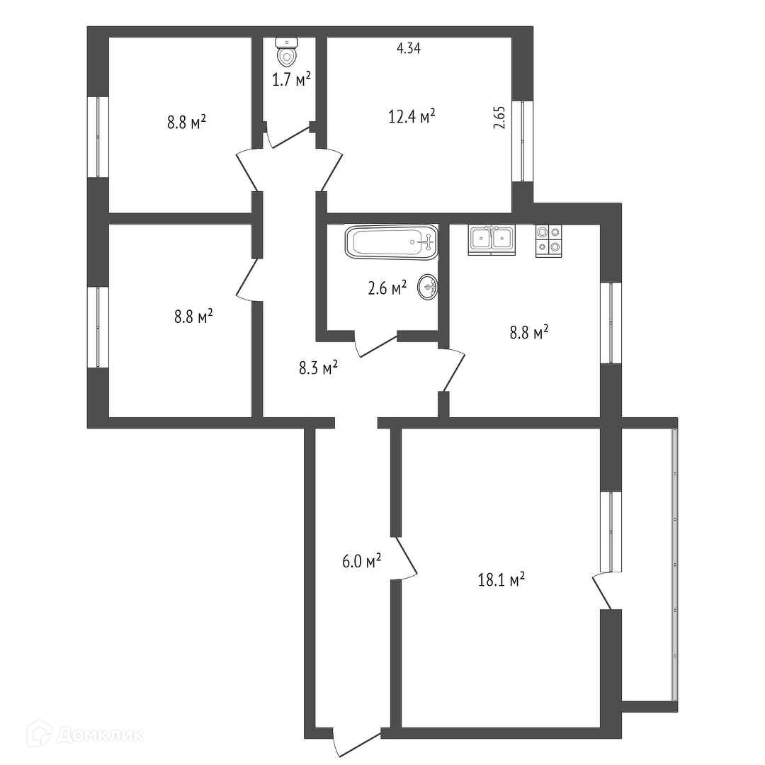 Общая площадь 12.4 м2