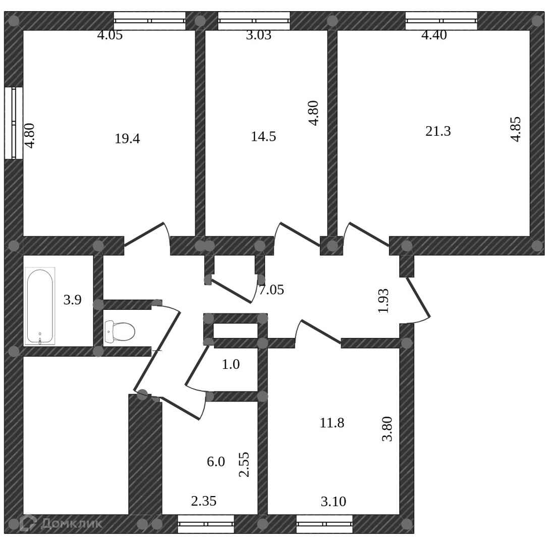 Площадь комнат