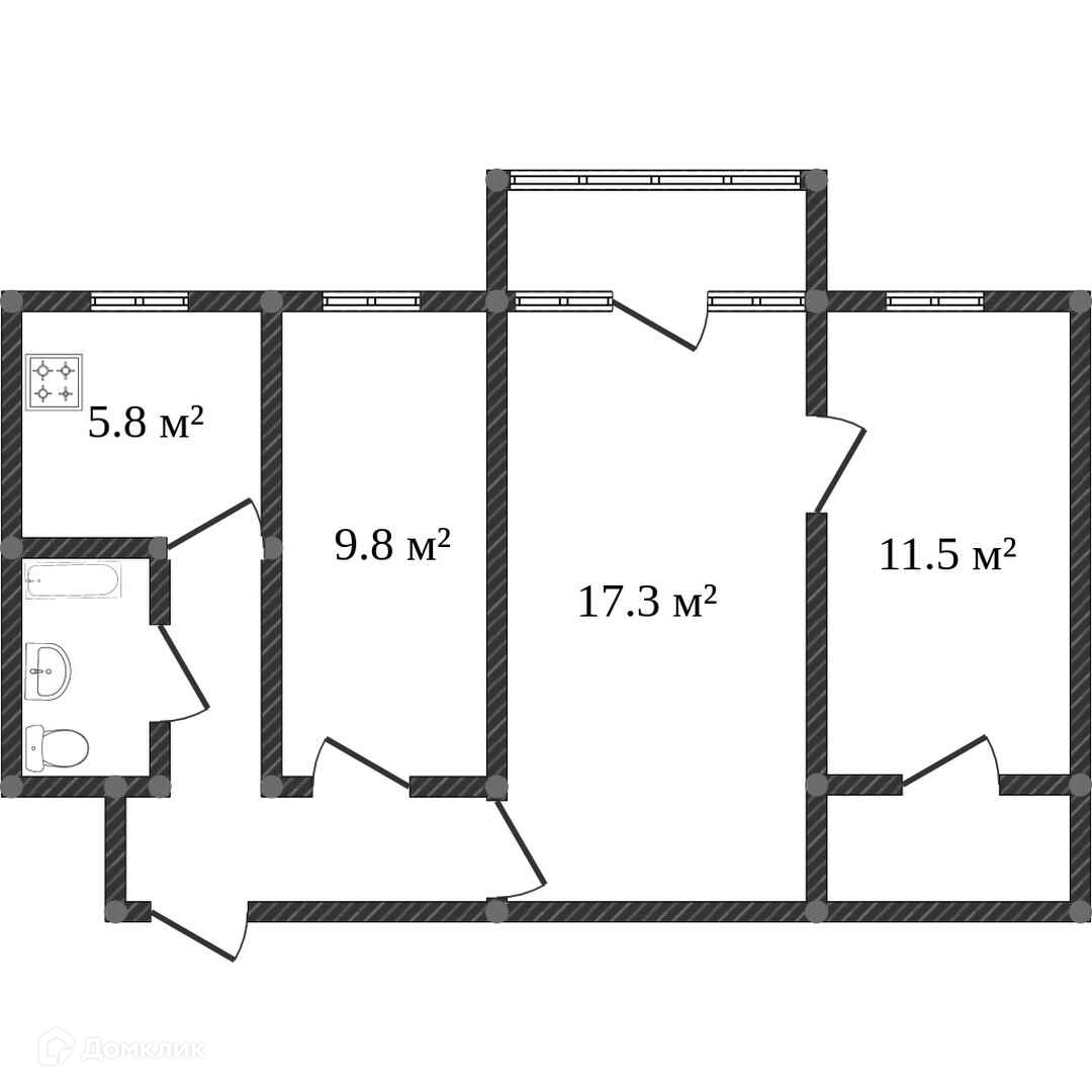 Общая площадь 55 м2
