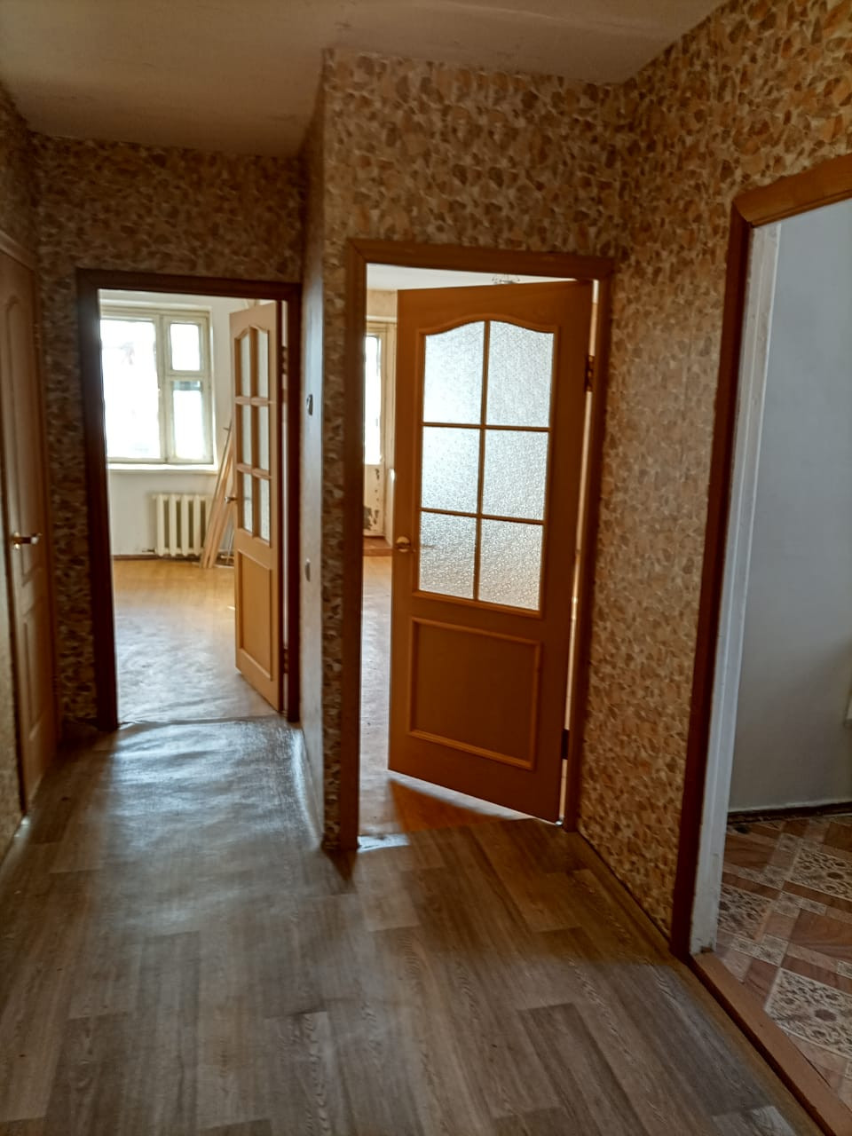 Солнечная, тёплая, просторная квартира.  Очень большая лоджия, большая кухня и и большая квадратная прихожая. Стены на кухне, ванне, туалете выровнены. Чистый подъезд, спокойные соседи. Удобная парковка. Рядом магазин, детский сад, школа, автобусная остановка. До города хорошая дорога, на машине 10-15 минут.