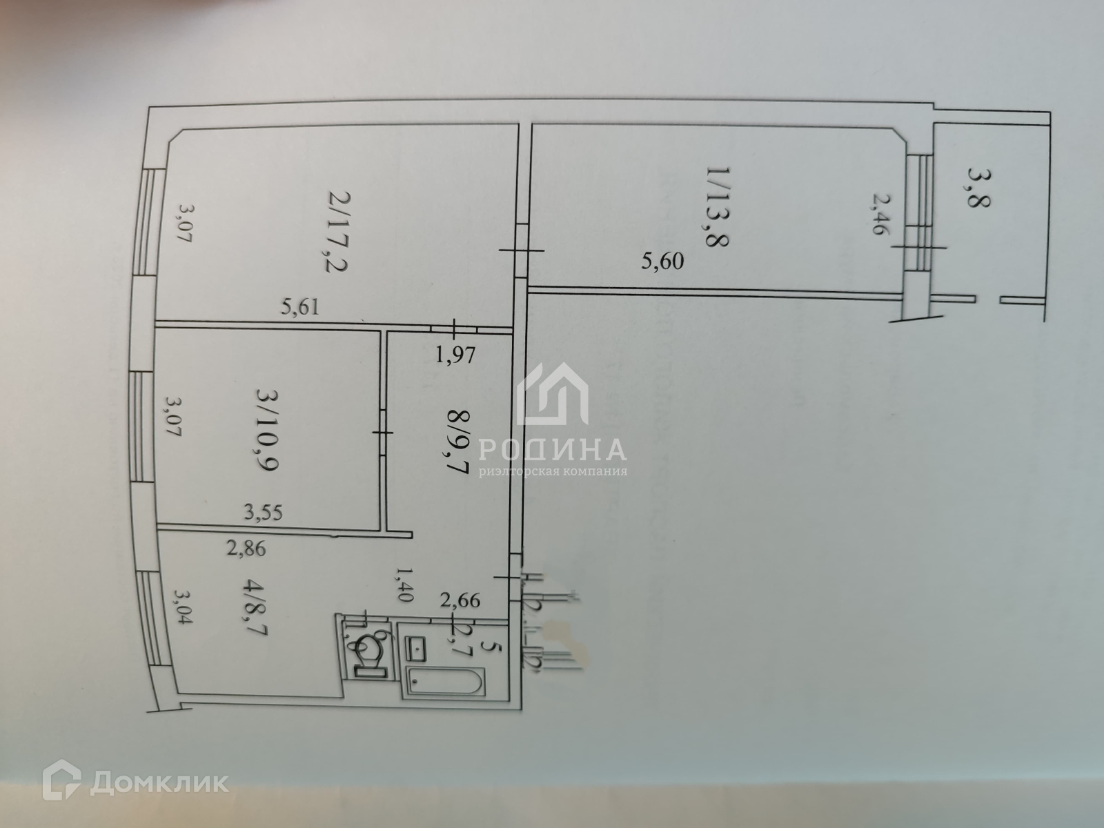 Жилая площадь 50.9 м2