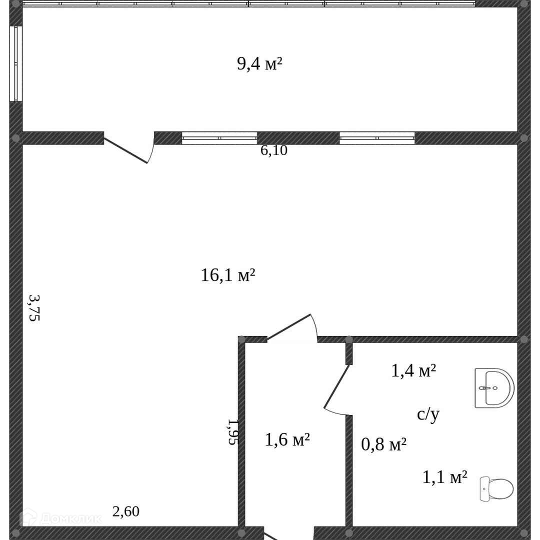 Общая площадь 28 м2