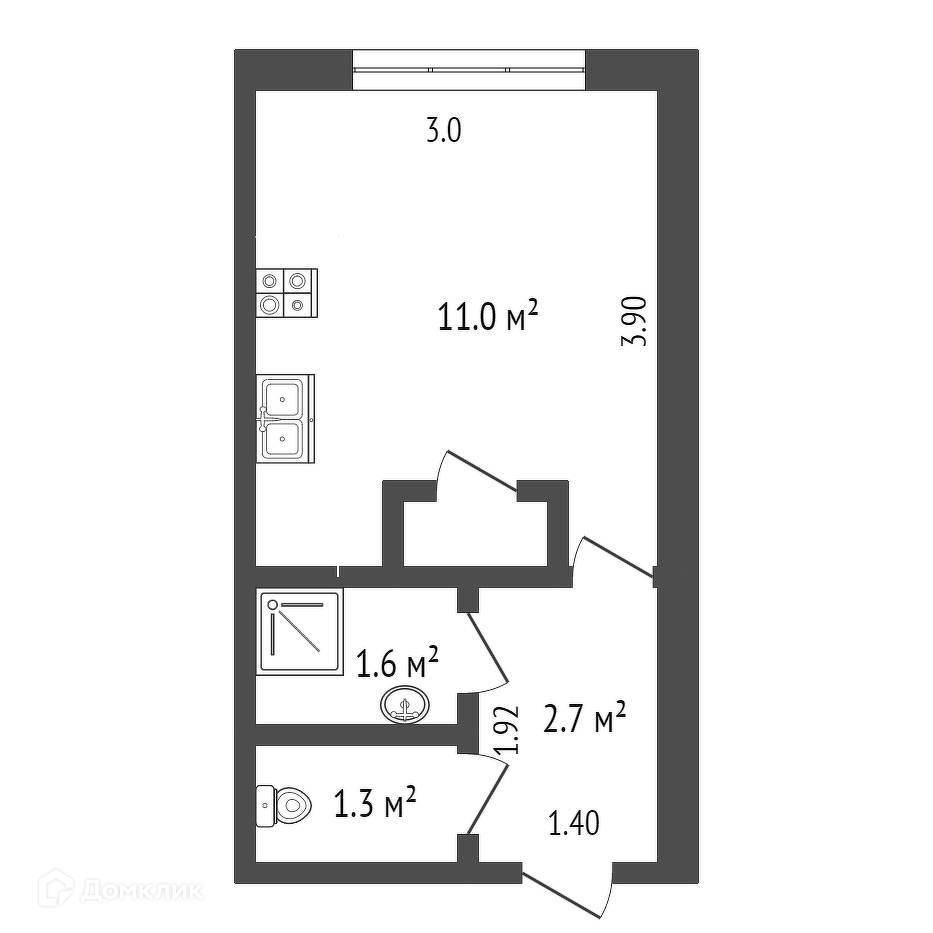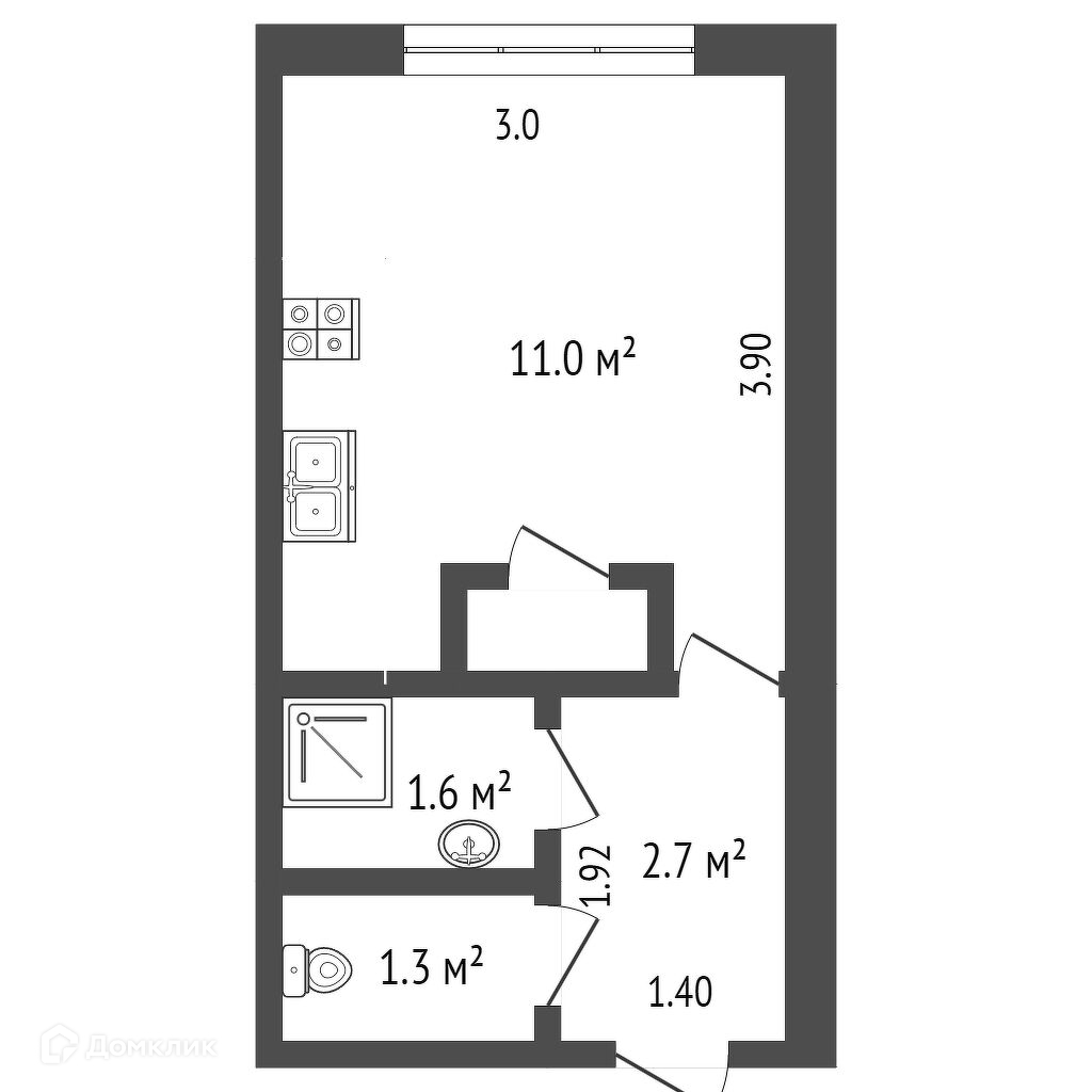 Общая площадь 17.3 м2