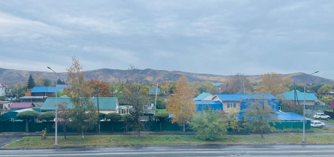 В квартире пластиковые окна, вид из которых открывается на сопки.