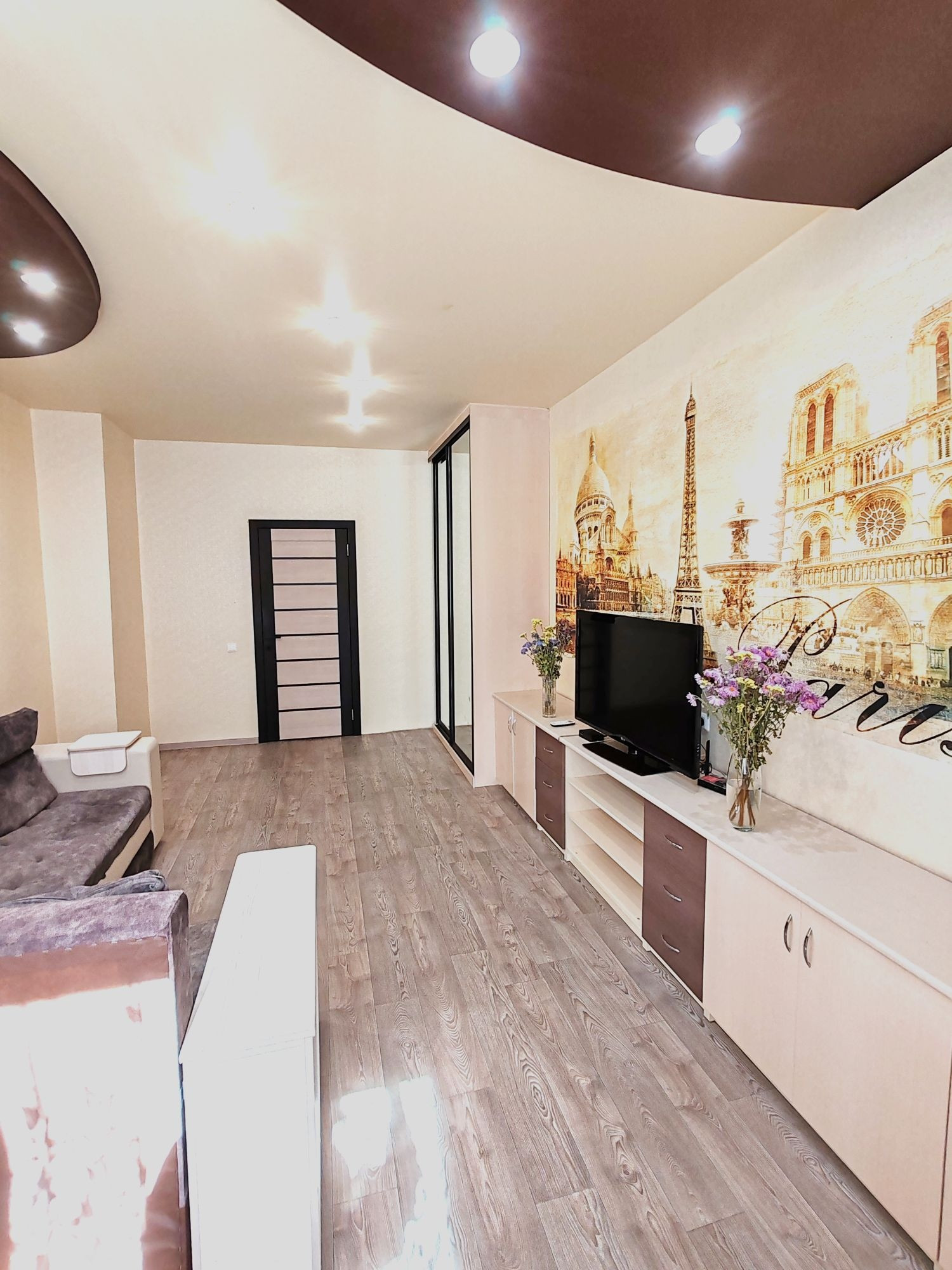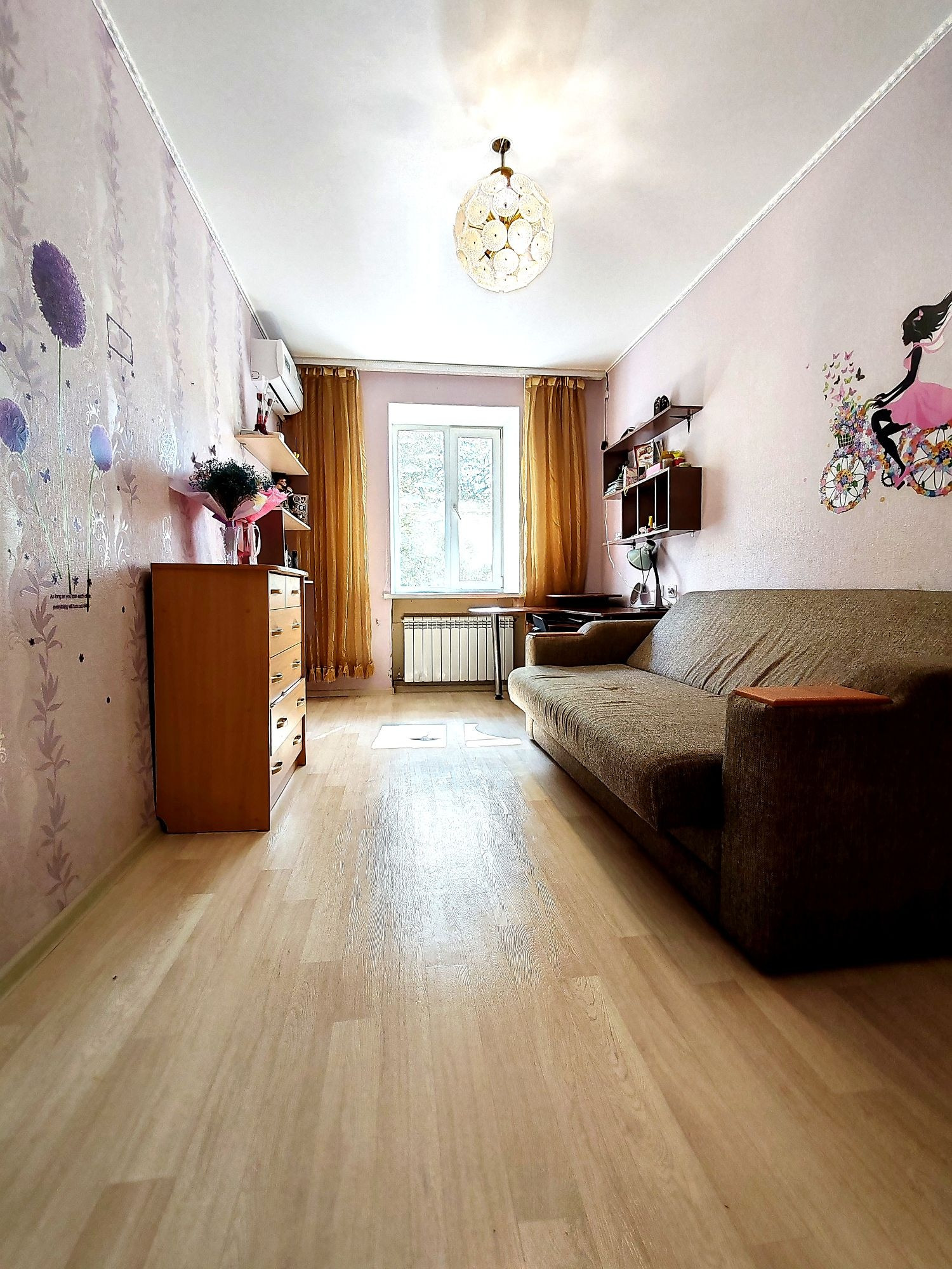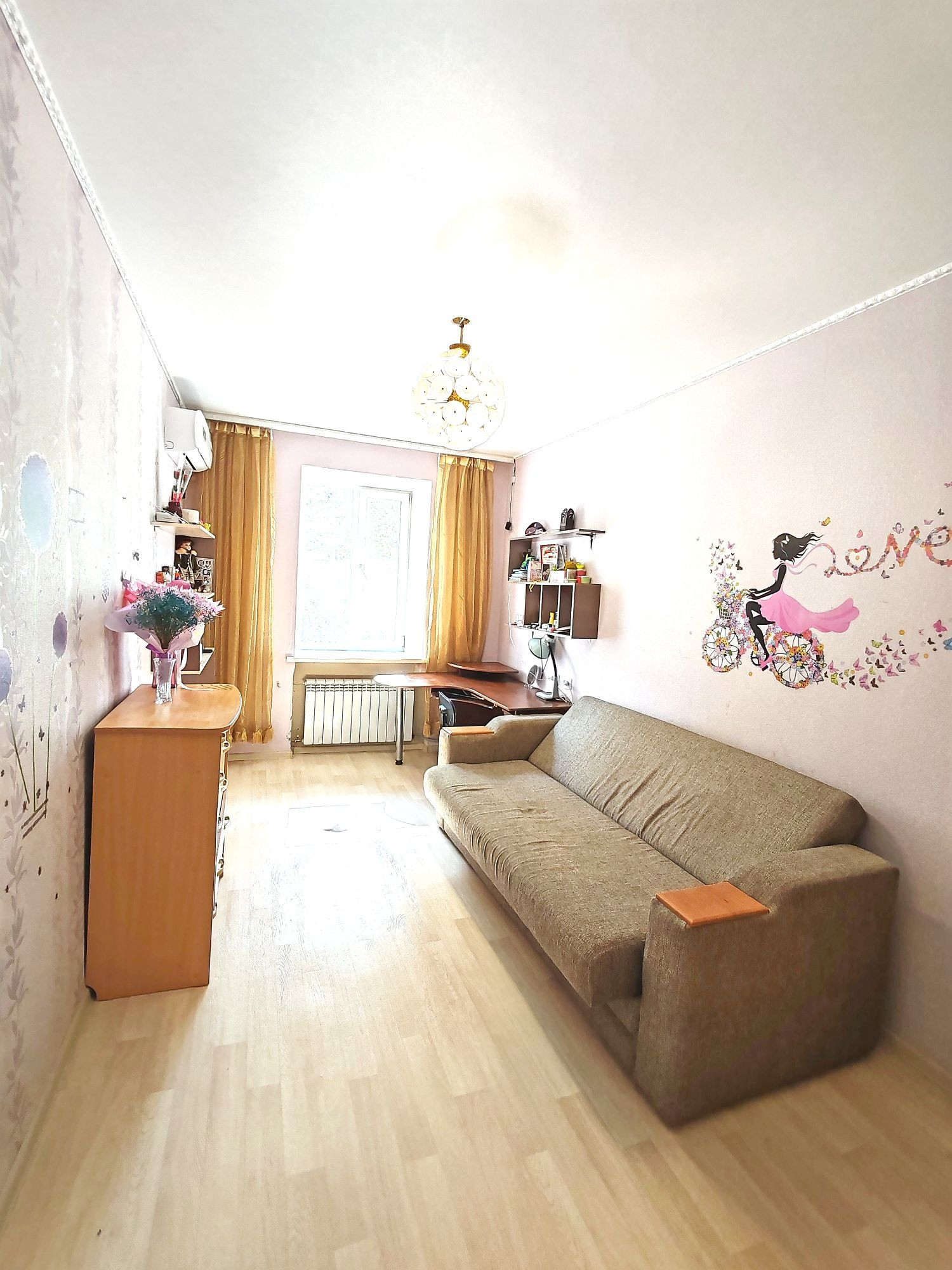 Состояние квартиры: коммуникационные системы дома в исправном состоянии. Потолки-натяжные с разным режимом освещения. Окна все пластиковые, батареи отопления нового образца. Проводка в квартире заменена. Напольное покрытие- частично ламинат, плитка ПВХ, стены выровнены, оклеены гармоничными обоями.