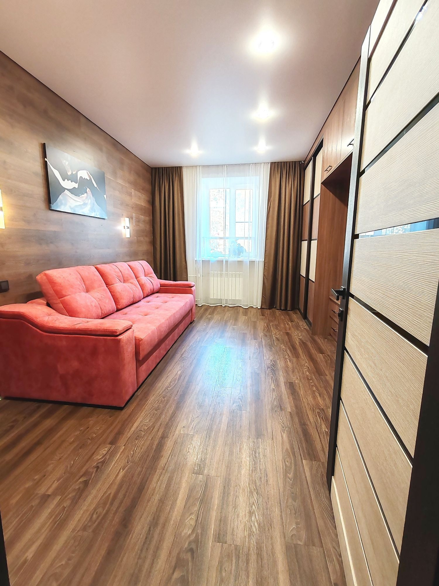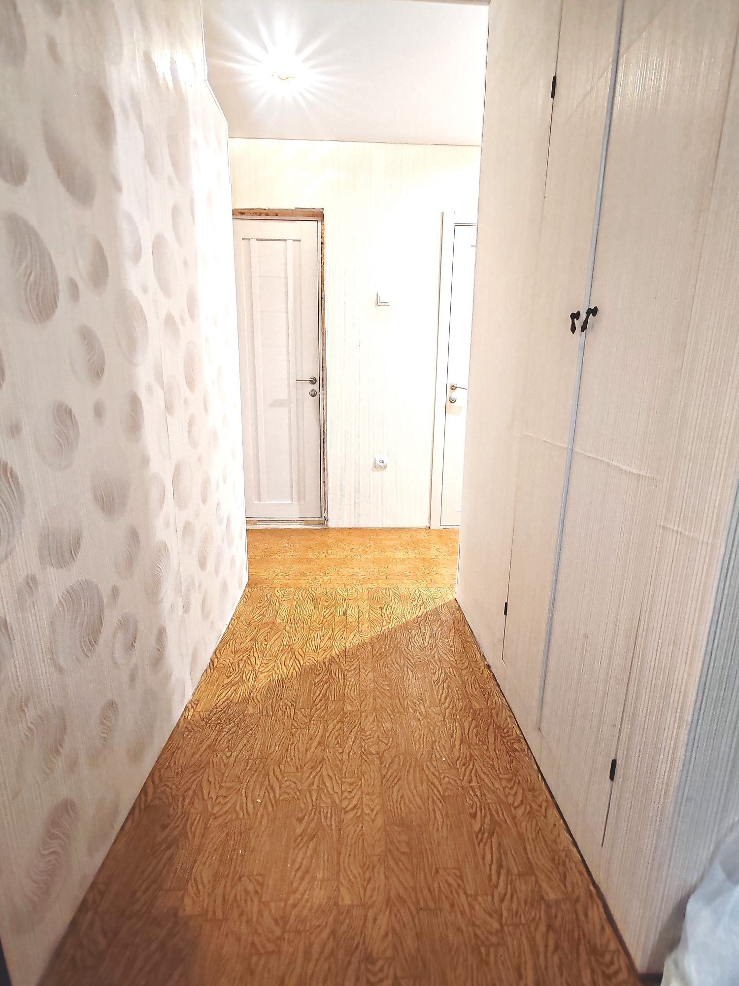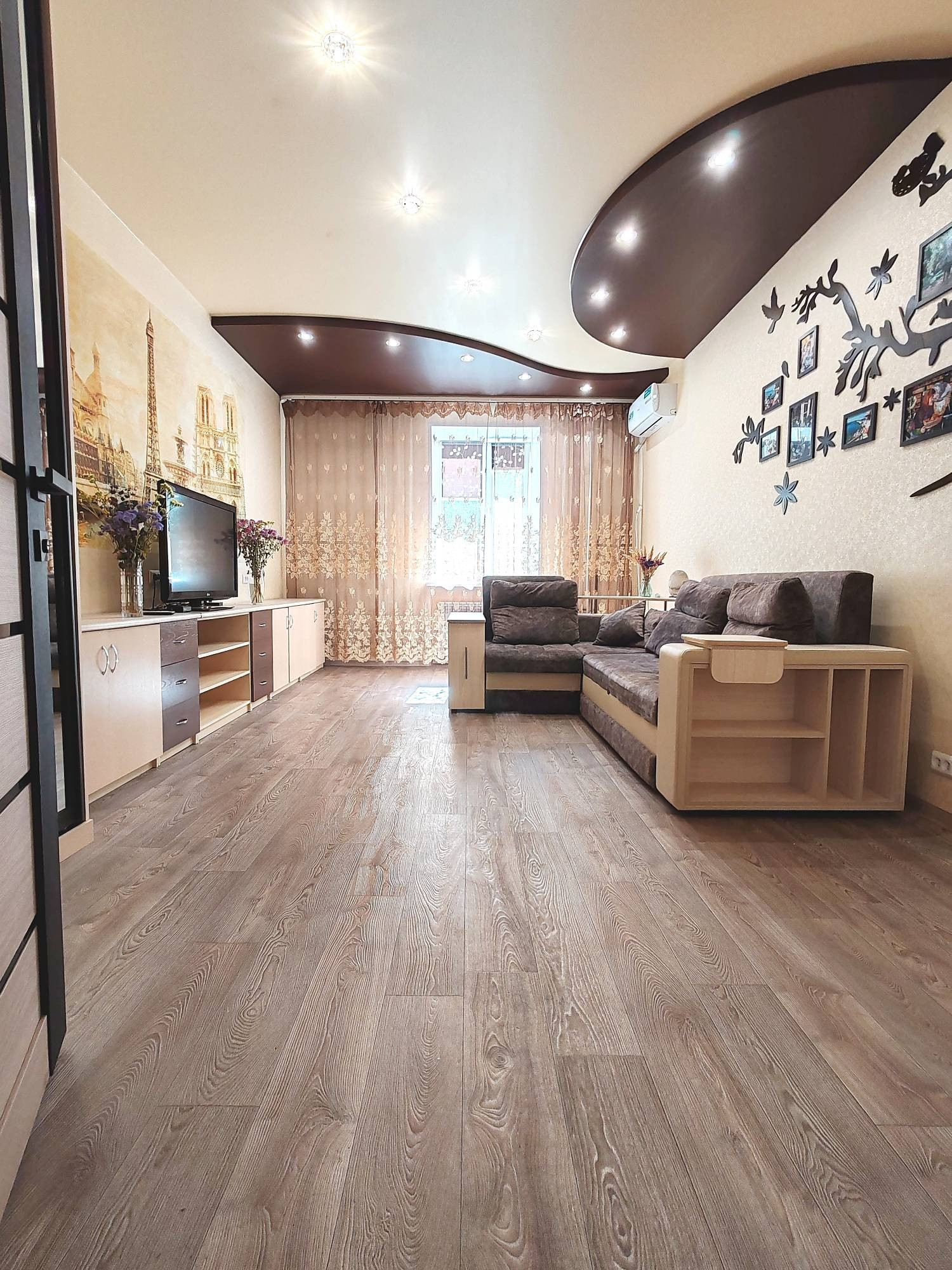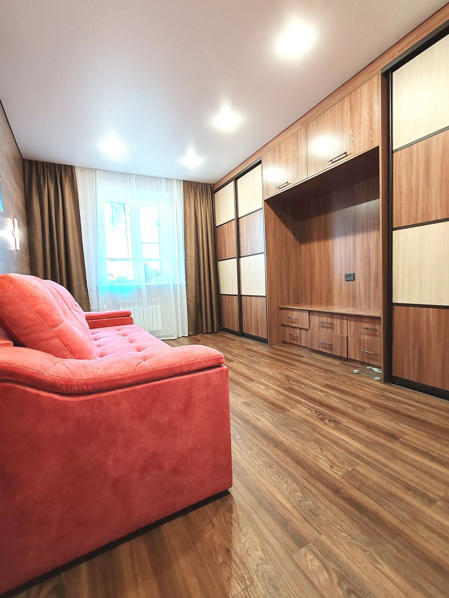 Состояние квартиры: коммуникационные системы дома в исправном состоянии. Потолки-натяжные с разным режимом освещения. Окна все пластиковые, батареи отопления нового образца. Проводка в квартире заменена. Напольное покрытие- частично ламинат, плитка ПВХ, стены выровнены, оклеены гармоничными обоями.