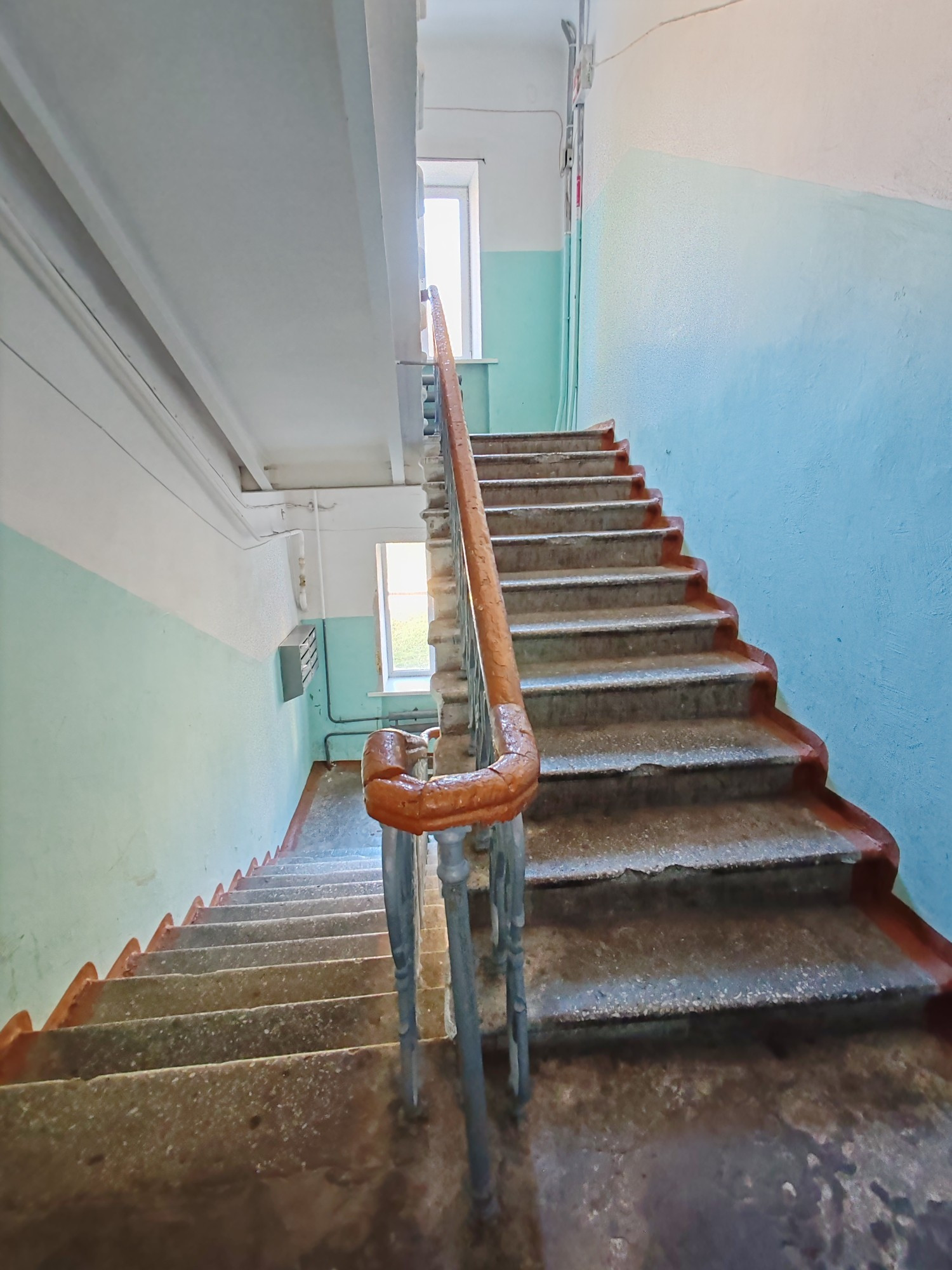 Планировка: две квартиры на площадке, широкие лестничные пролеты, современный домофон.