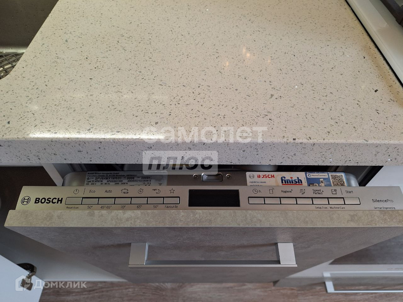 -Современный кухонный гарнитур со встроенной бытовой техникой (посудомоечная машинка, вытяжка, варочная панель);