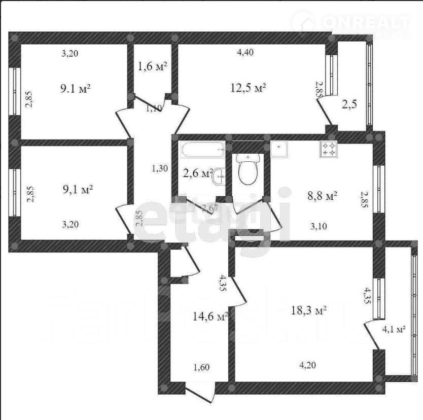 Продаю просторную 4-х комнатная квартира, расположенную на 3м этаже в 10-ти этажном доме улучшенной планировки по адресу ул.Калинина 41 (дом со своим ТСЖ).
