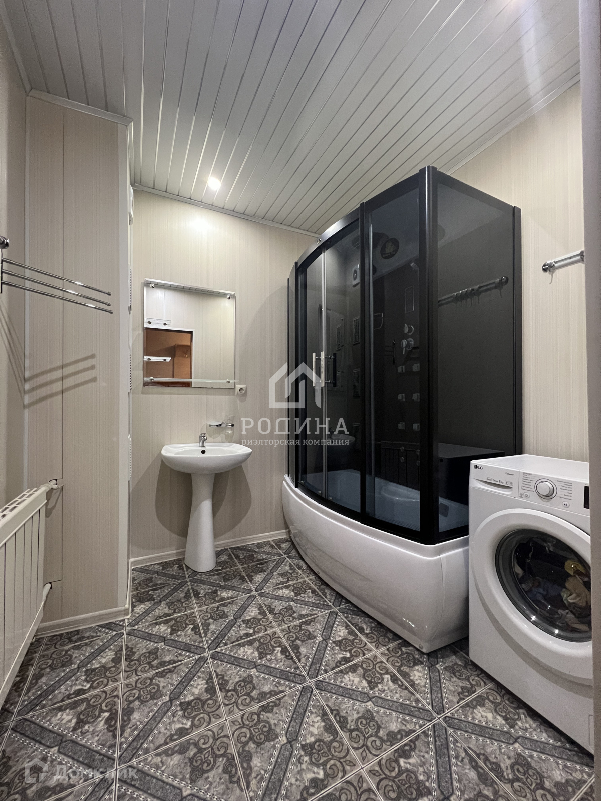 Холодная вода — скважина, проведена в дом, горячая вода из бойлера, 100 литров.