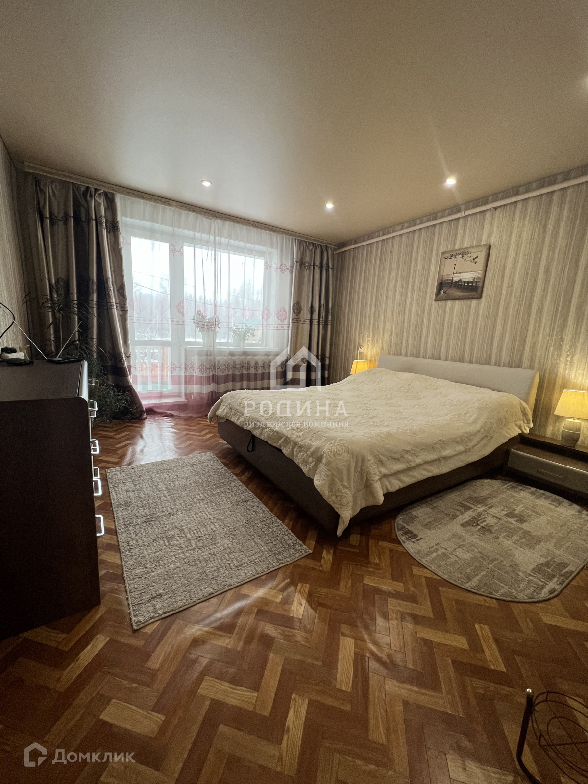Стены оклеены обоями.