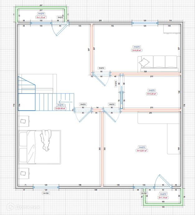 Общая площадь 180 м2