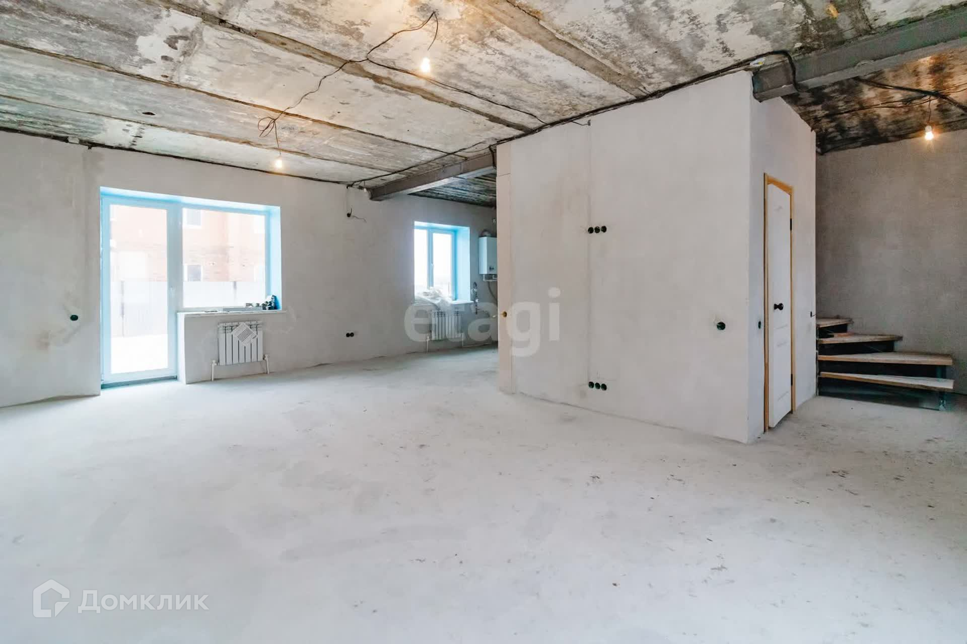 Общая площадь таунхауса 200 кв.м., участок в собственности и имеет площадь 200 кв.м. В самой квартире пред чистовая отделка, установлены выводы под три санузла на каждом этаже, выполнена планировка с разделением на четыре комнаты. Установлены пластиковые окна, два балкона. На первом этаже тёплые пол, сделана разводка по электричеству. Залита стяжка. Стены подготовлены к наклеиванию обоев.