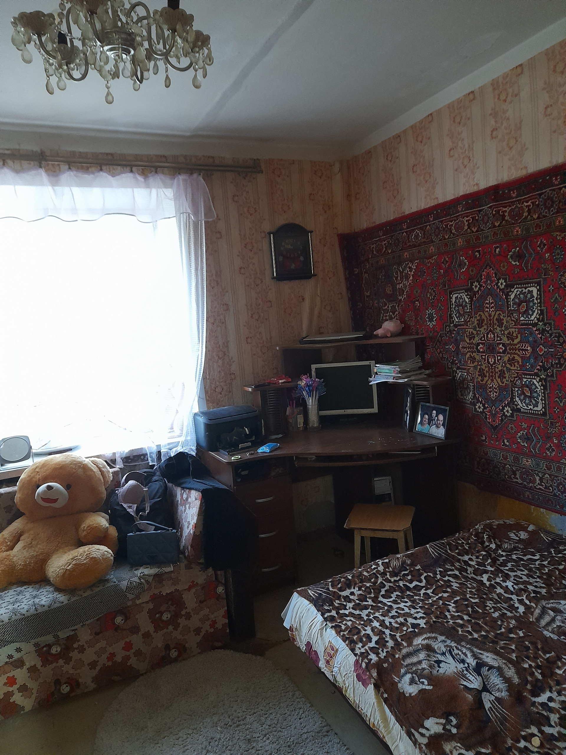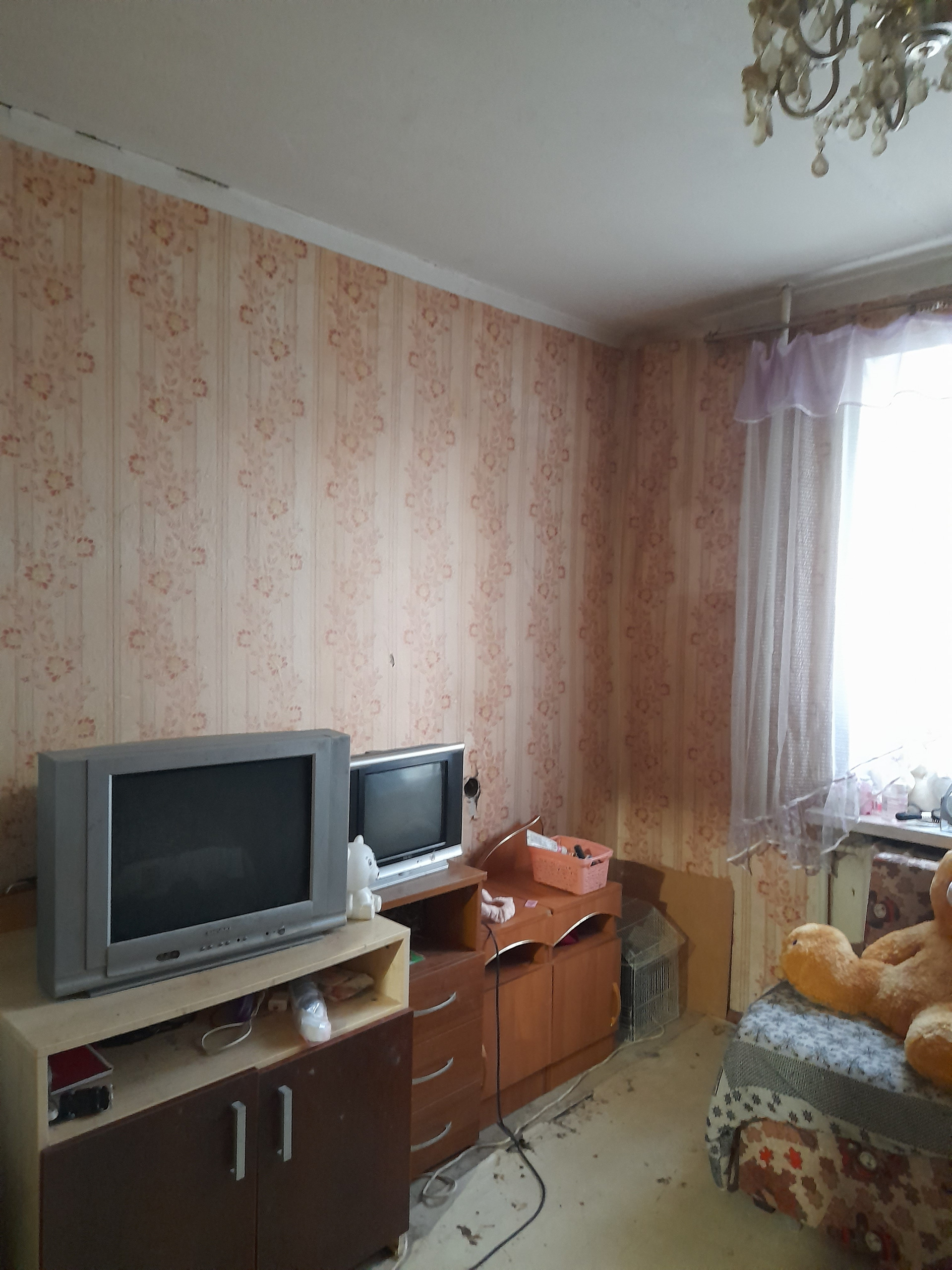 продается изолированная комната в квартире - по документам 1/2 доли в 2-х комнатной квартире по адресу Комсомольск, ул.Люлина, д.34а, подъезд 2. Второй этаж пятиэтажного дома. Имеется второй собственник, разрешение на продажу от него не требуется - лицевые счета разделены на основании судебного решения. Душ, туалет кухня и кладовка -  общие. Мебели нет. Окно пластик, вид из окна на дорогу по улице Люлина. Требуется косметический ремонт. В квартире проживает женщина с ребенком. торг возможен.