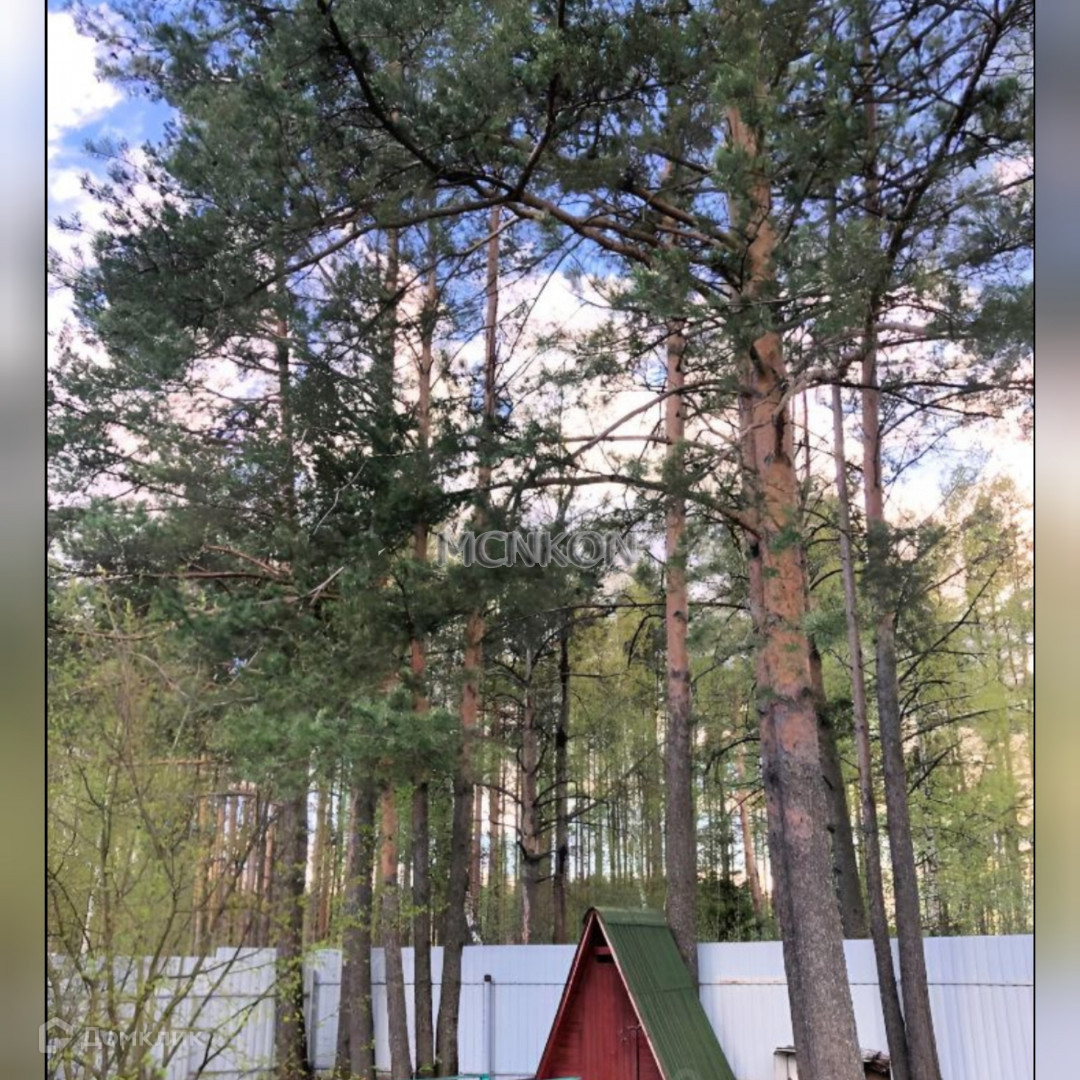 Участок 12 соток ухожен, в окружении сосен и елей, огорожен забором.