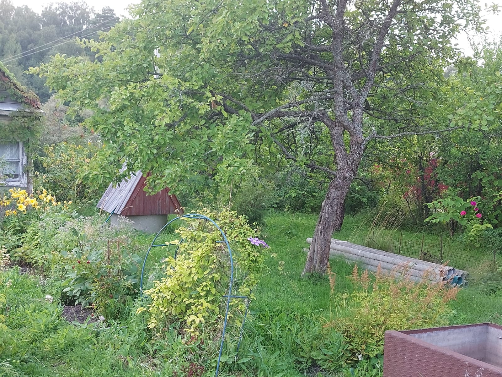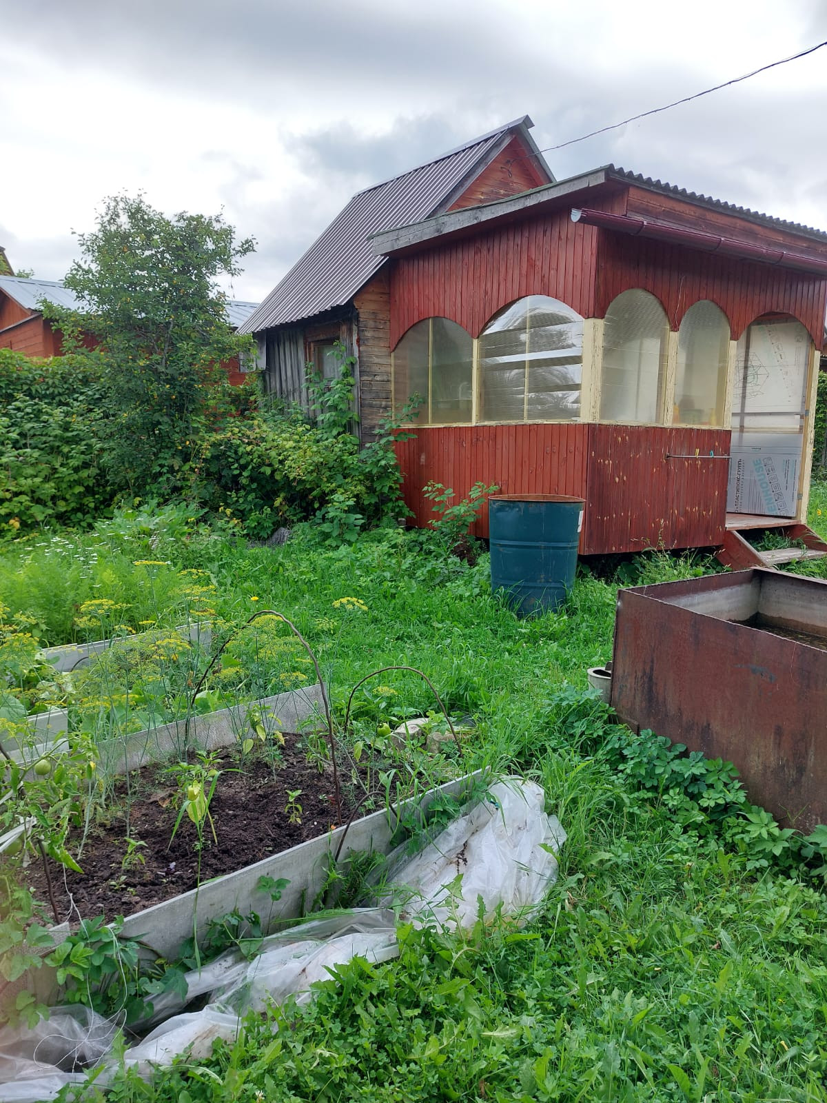 На территории два домика (один из них под снос) и два колодца. Второй домик (фото приложены) имеет веранду, обшит изнутри вагонкой, размеры приблизительно 3.5×2.5 и веранда  2.5х2.5. Ее расположение максимально комфортное - 2 минуты пешком до леса и 5 минут пешком до воды. Адрес: ул. Боровая, д. 252.