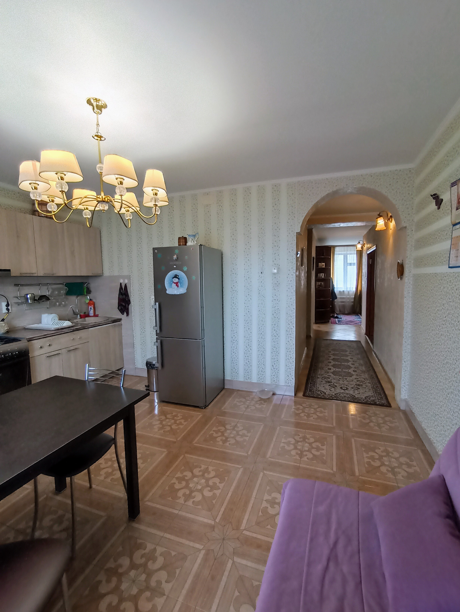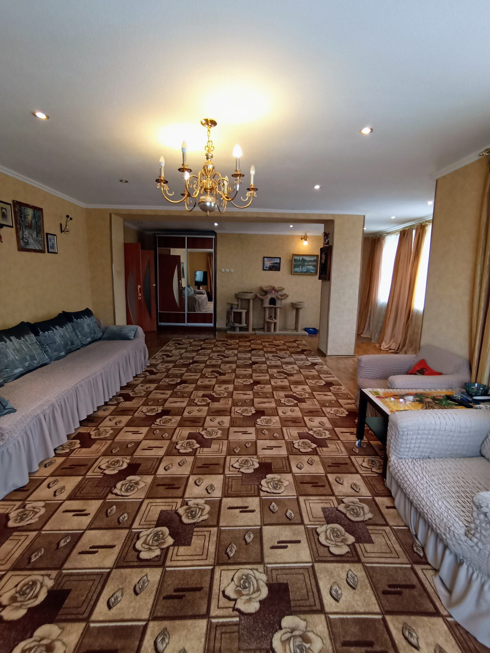 Оснащен видеонаблюдением, домофон с камерой, ТВ., интернет, телефон, умная система контроля напряжения электричества, фильтры жёсткой и мягкой очистки воды.