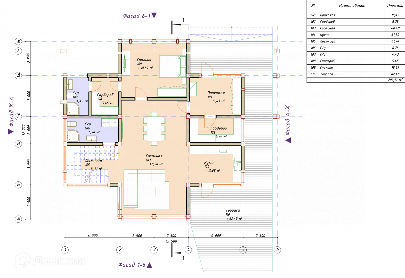 1 этаж: прихожая, гардеробная, гостиная, кухня-столовая, с/у, мастер-спальня со своей гардеробной и с/у