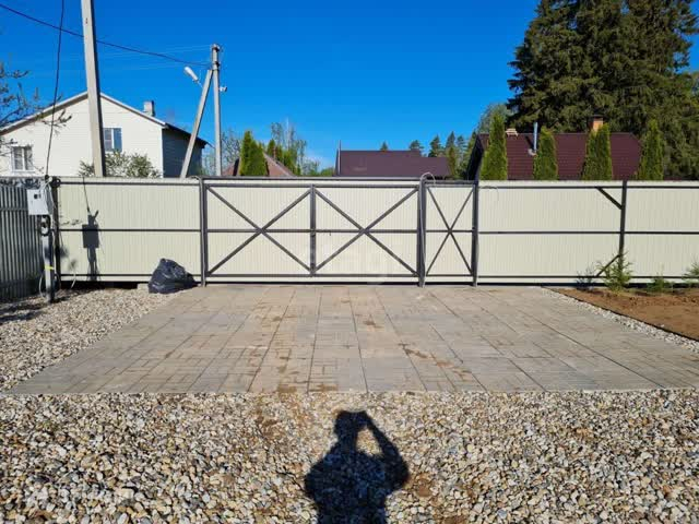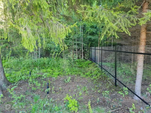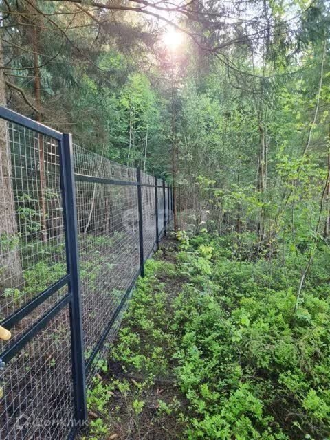 Участок ровный и сухой, уже отсыпан. По периметру забор сетка, лицевая часть профлист. С трёх сторон нет соседей.