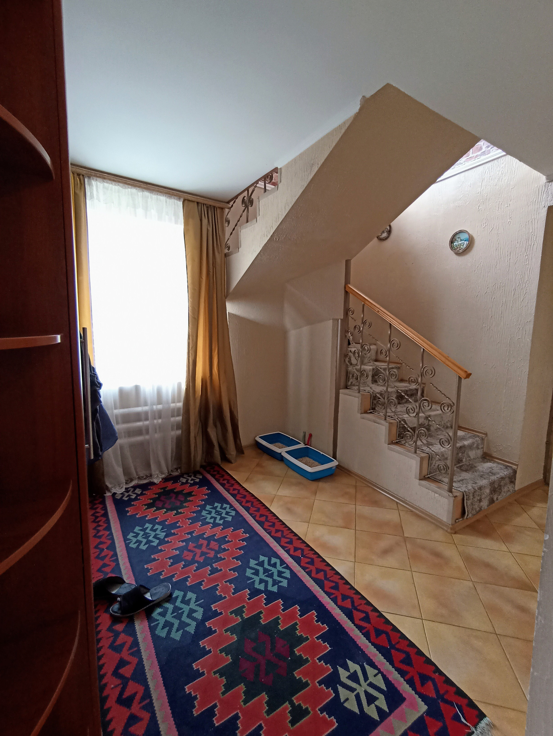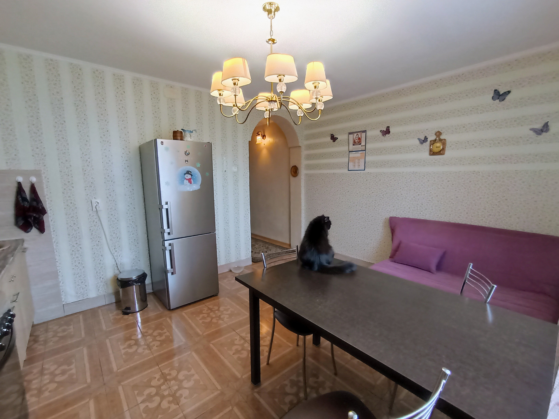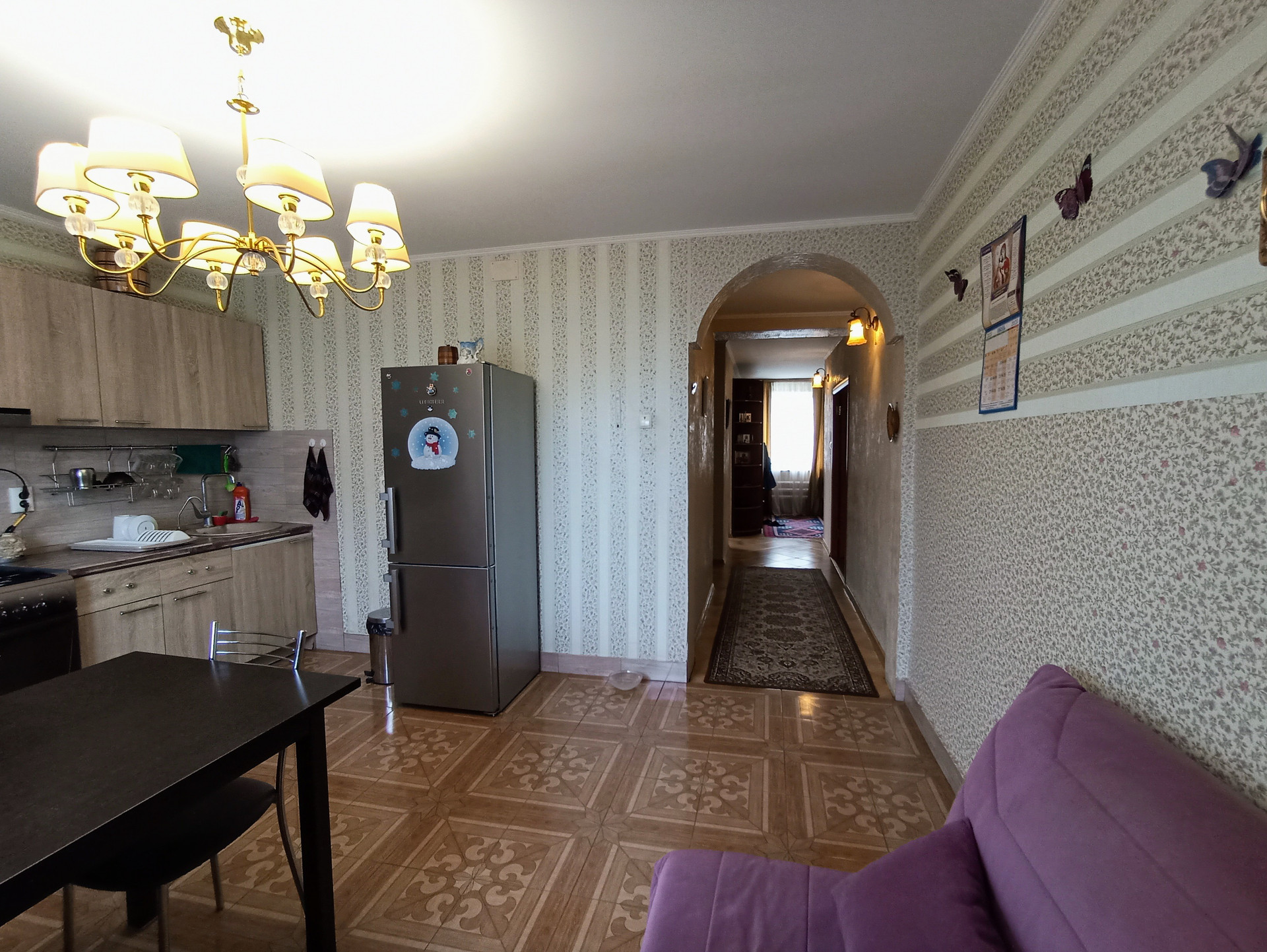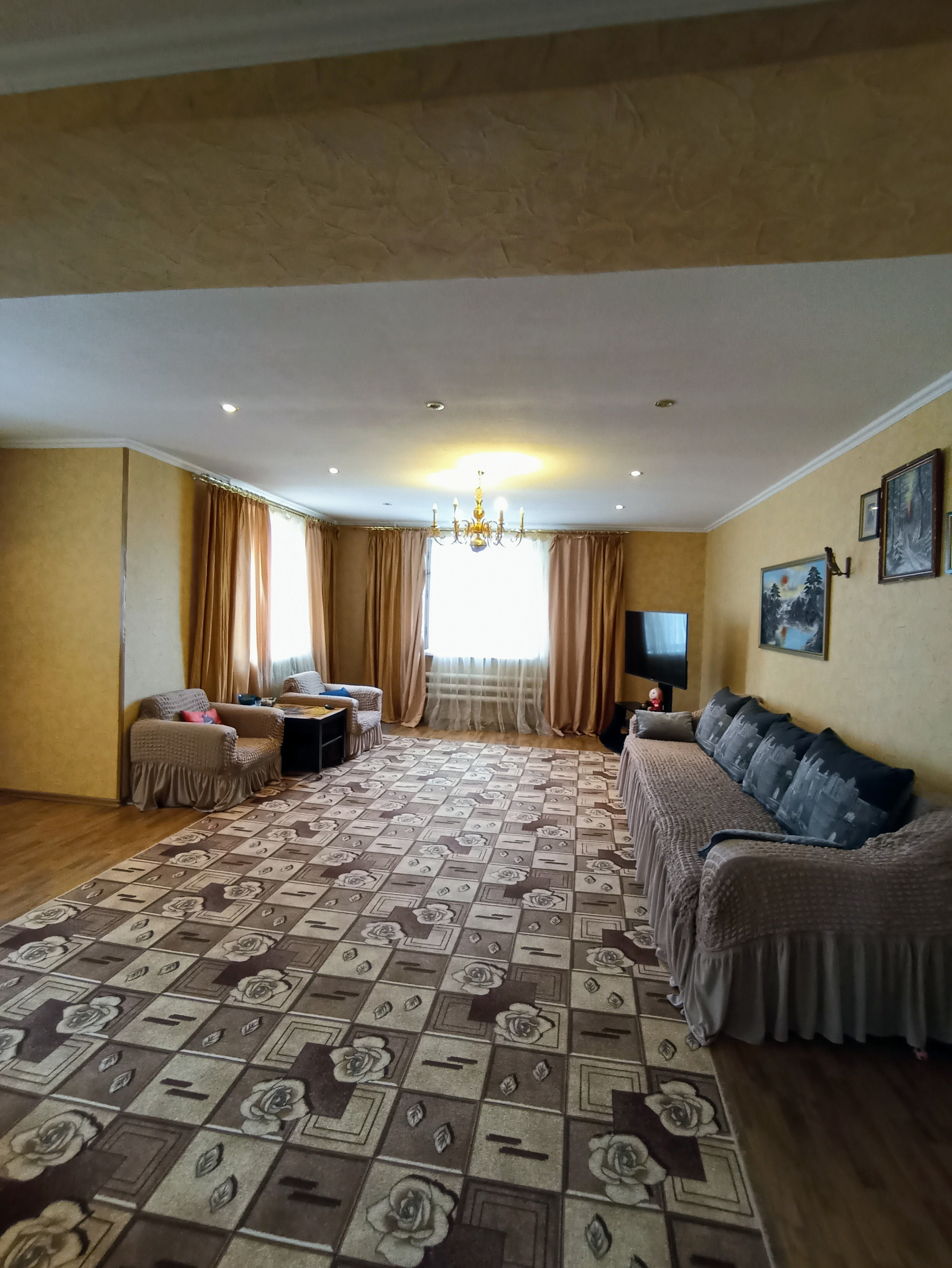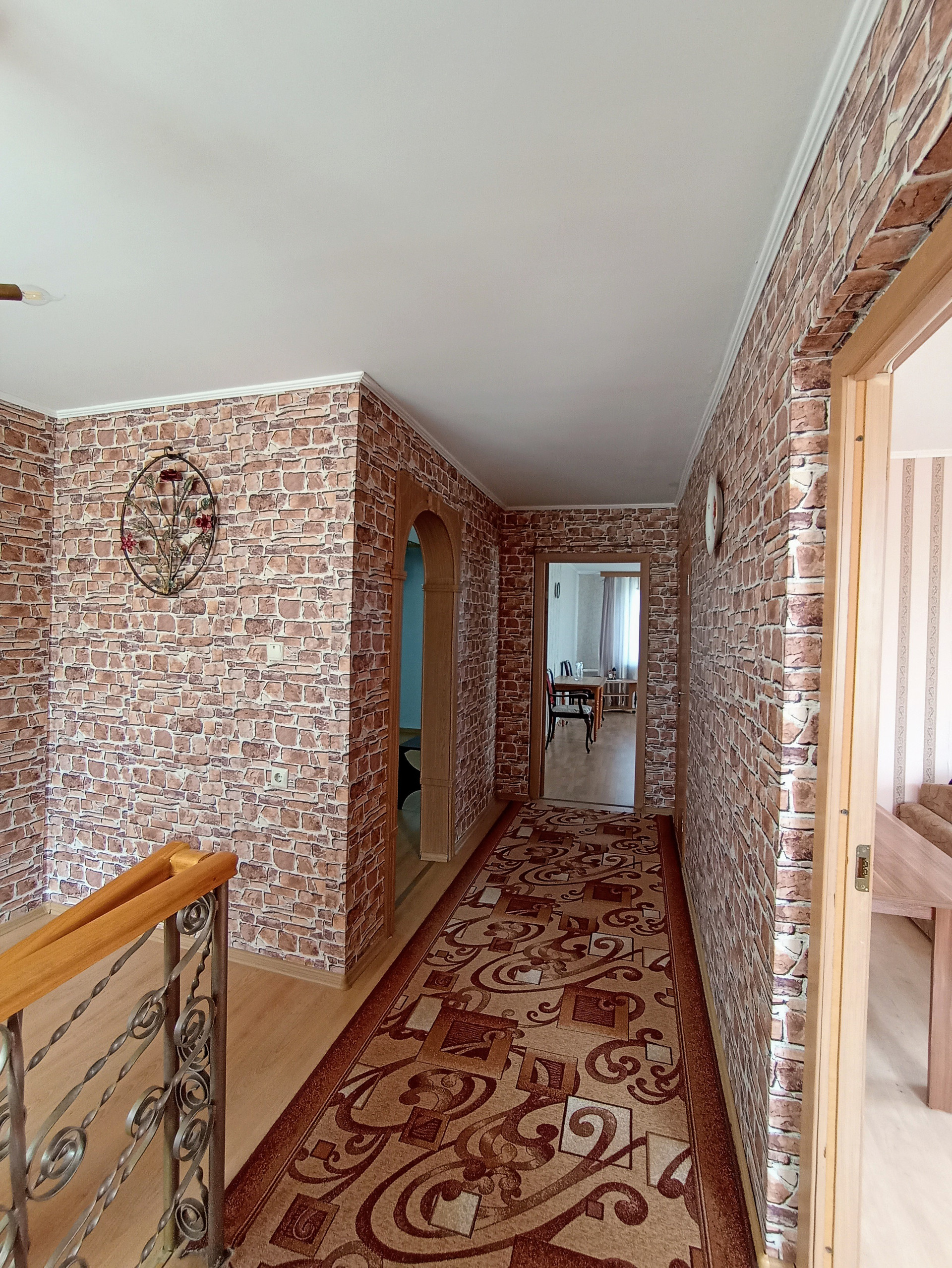 Оснащен видеонаблюдением, домофон с камерой, ТВ., интернет, телефон, умная система контроля напряжения электричества, фильтры жёсткой и мягкой очистки воды.