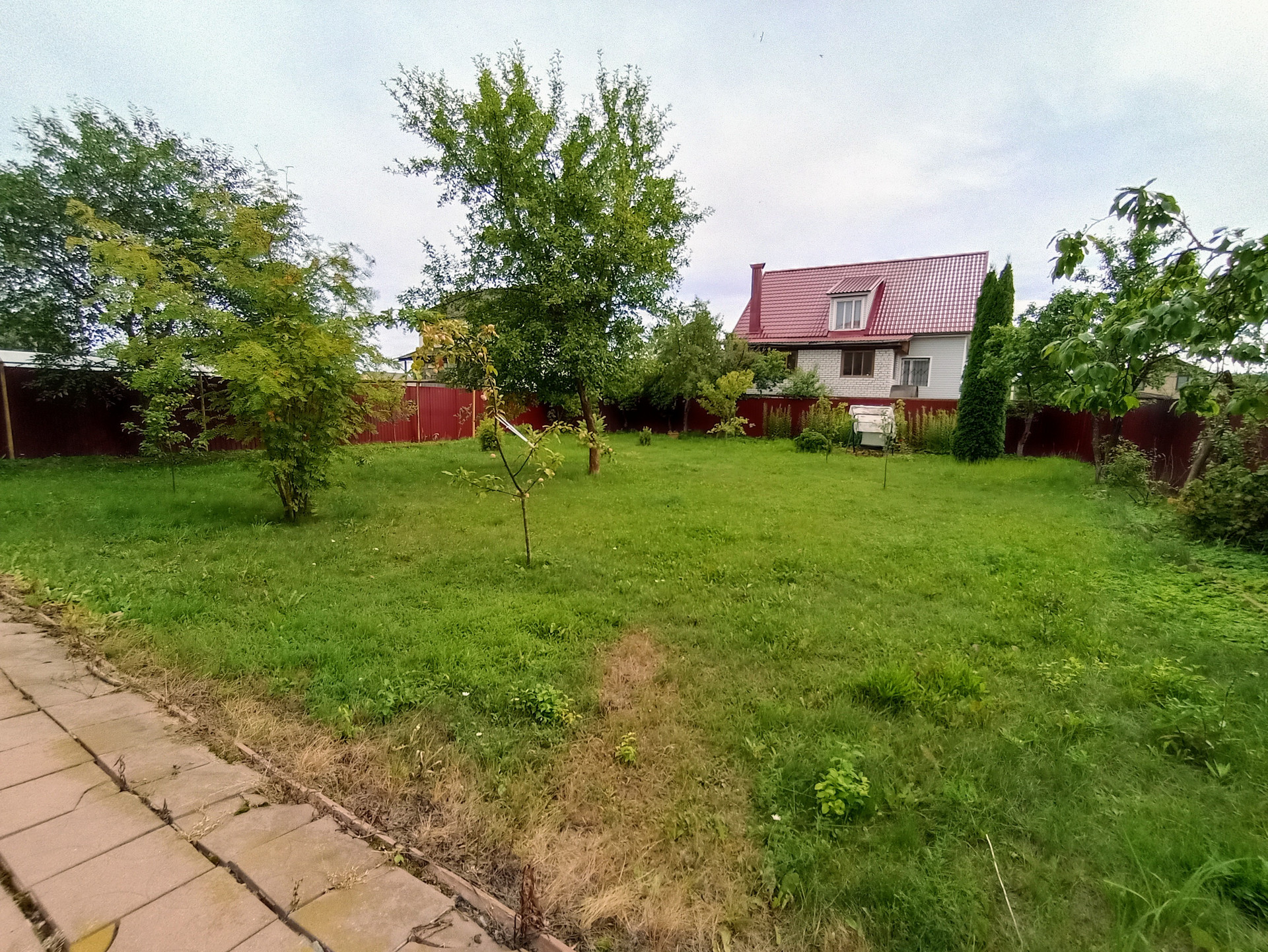 На земельном участке площадью 9 сот. расположен сад. Участок сухой, правильной формы.