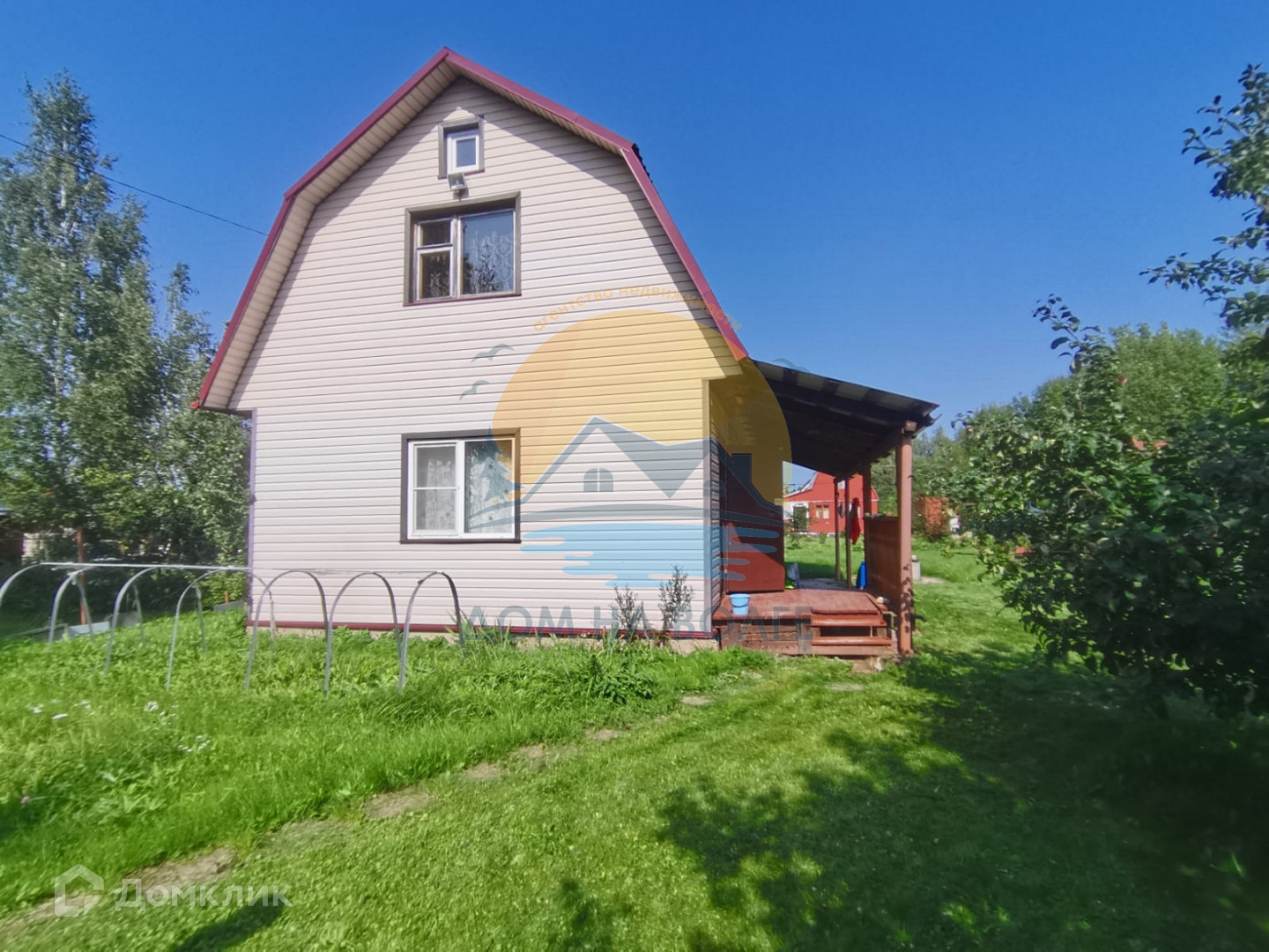 Двухэтажный дом из бревна 6*9, кровля металлочерепица, общая площадь 81 м², фундамент ленточный, окна пвх на 1-ом этаже, построен с использованием качественных строительных материалов.