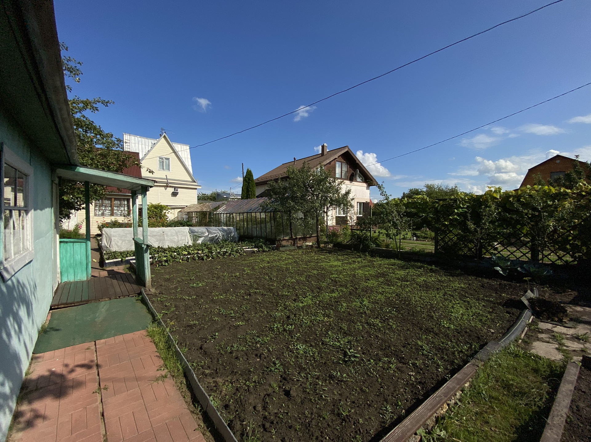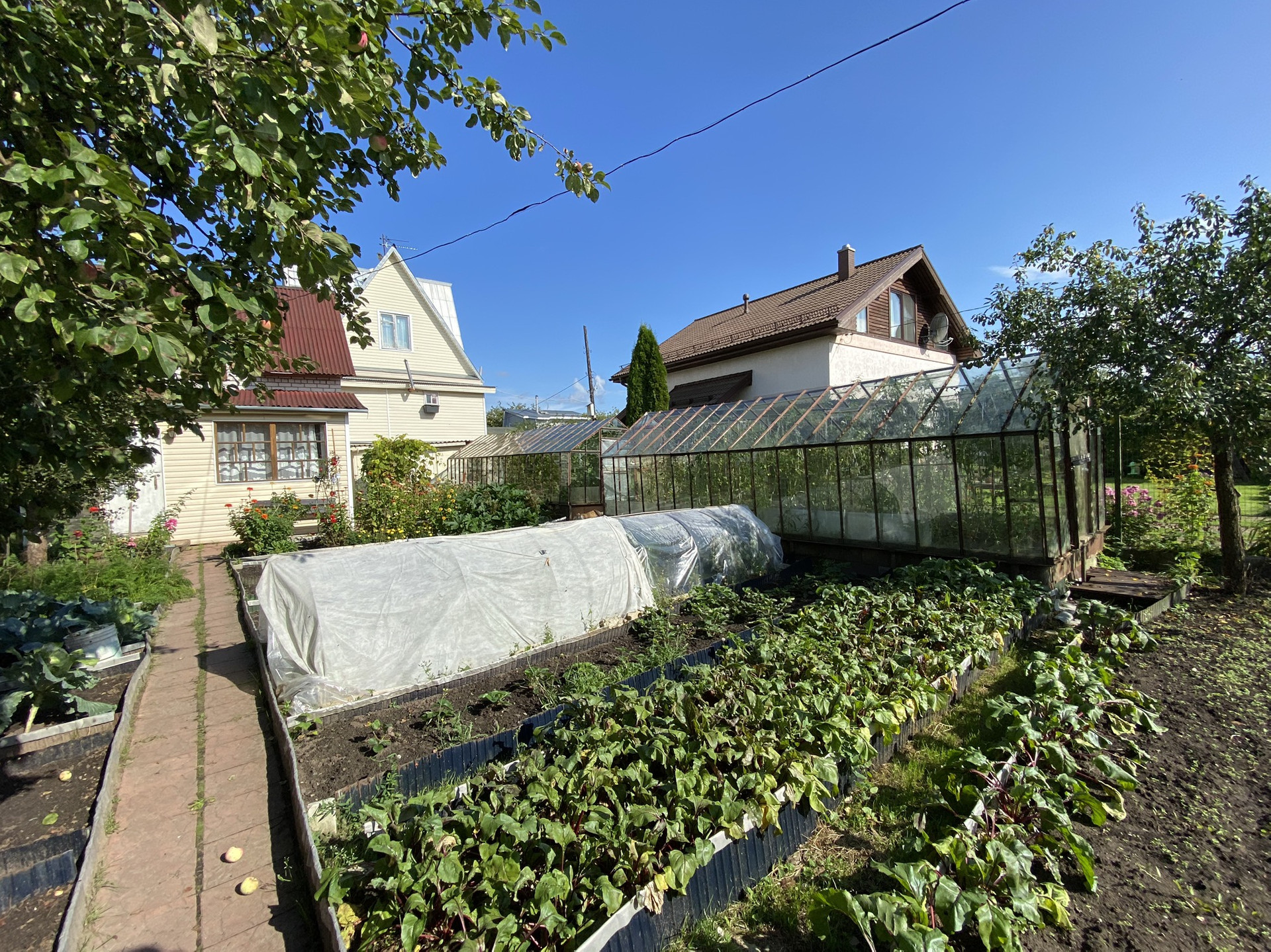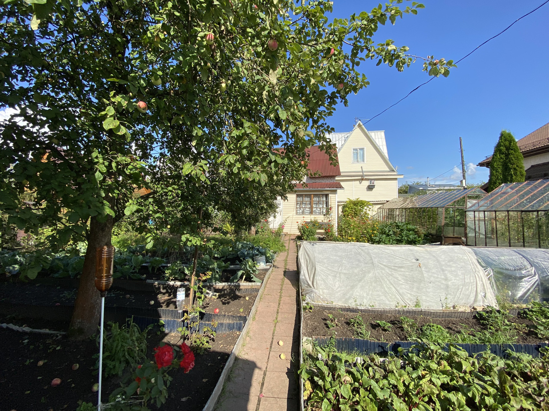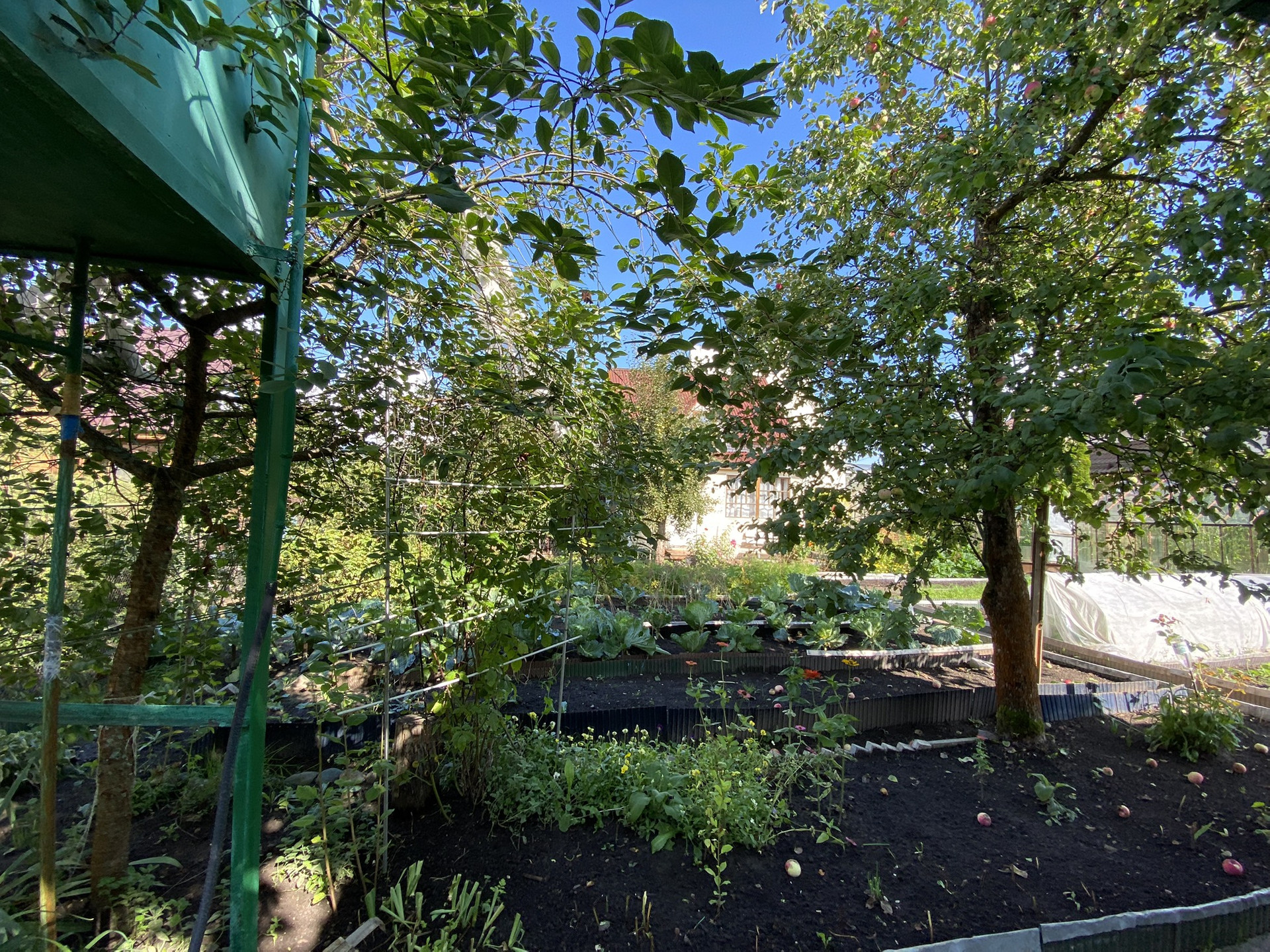 Участок ухожен и разработан ,имеется две теплицы ,растут плодовые деревья ,яблони ,груши .