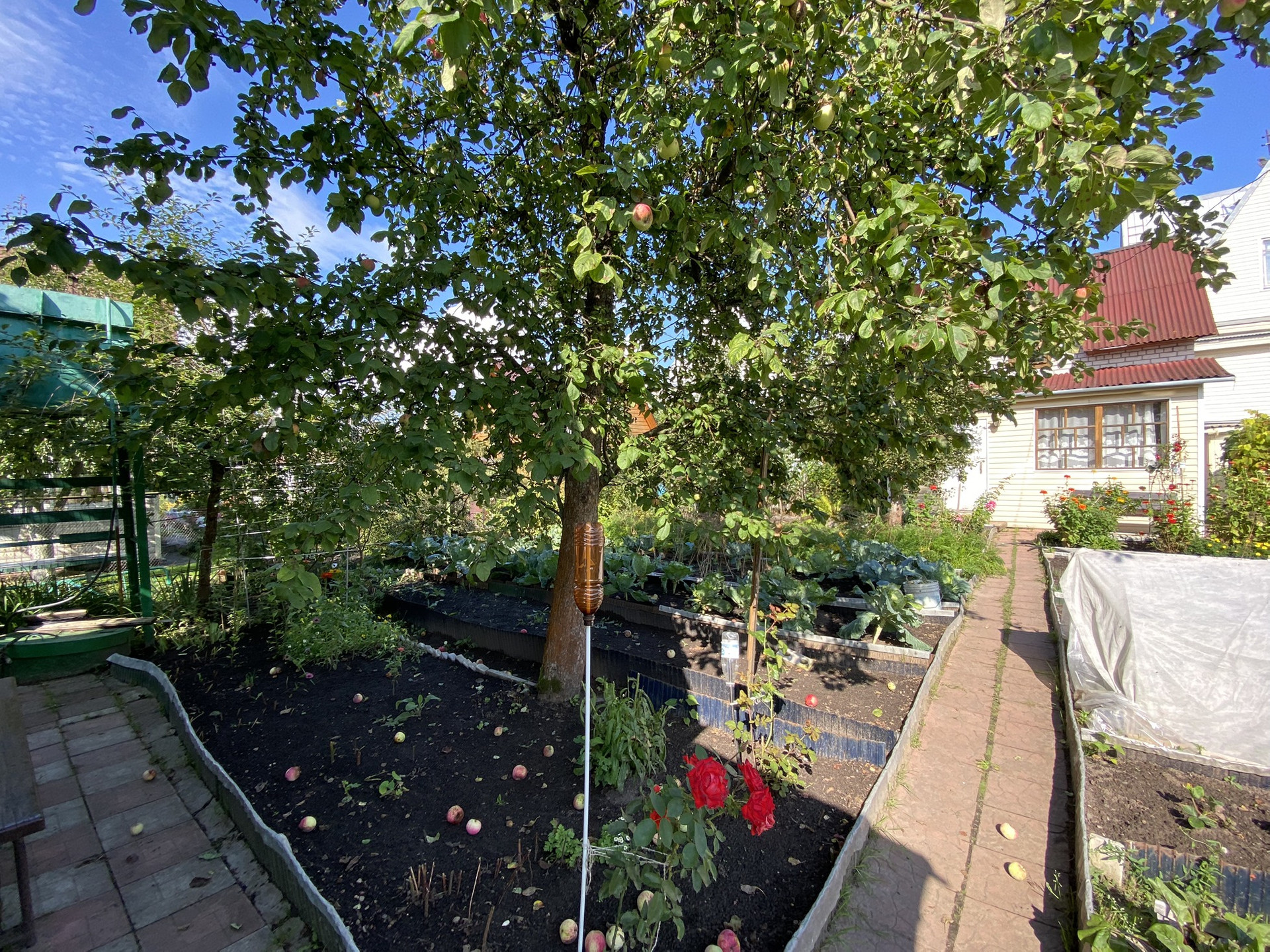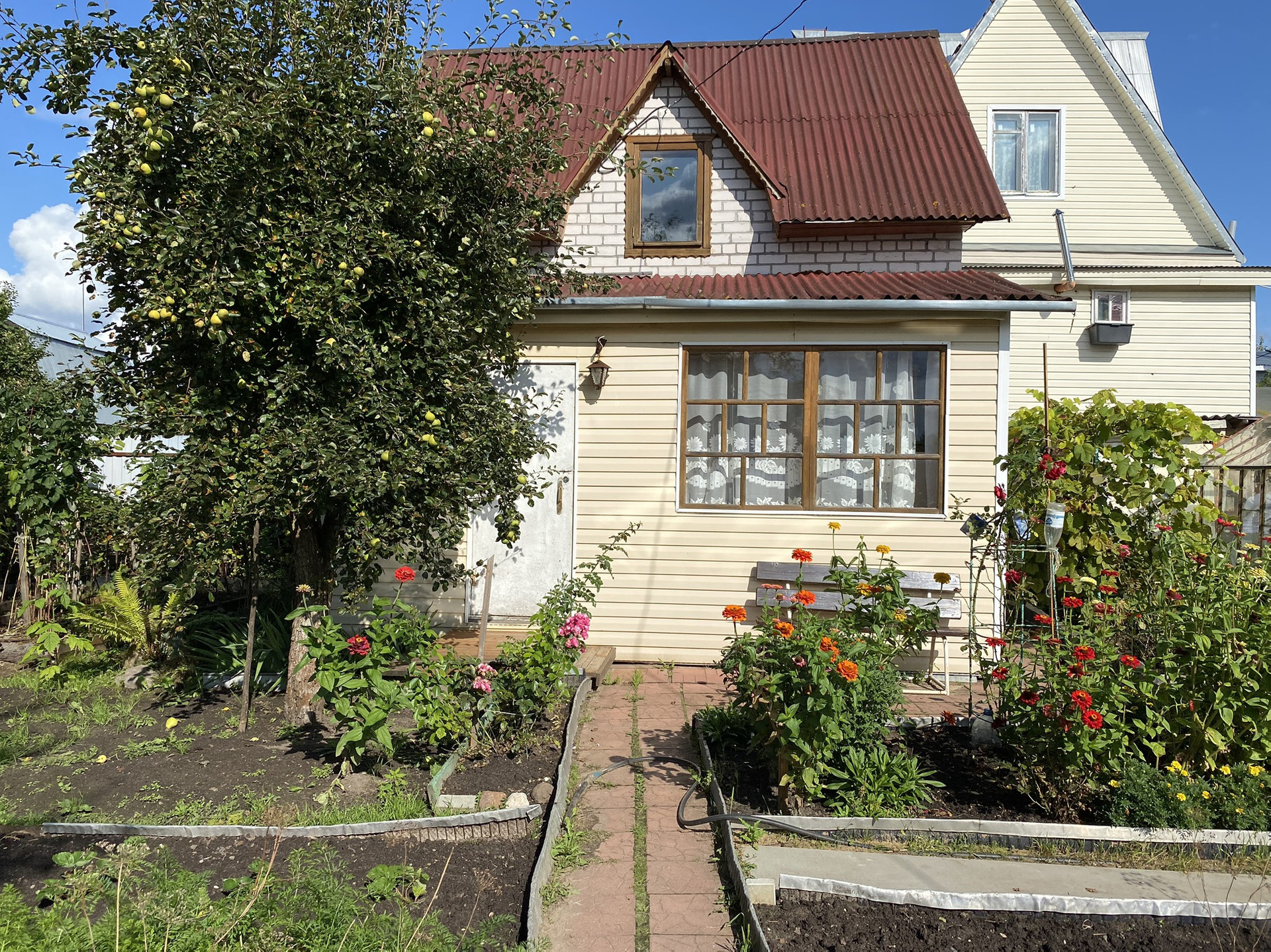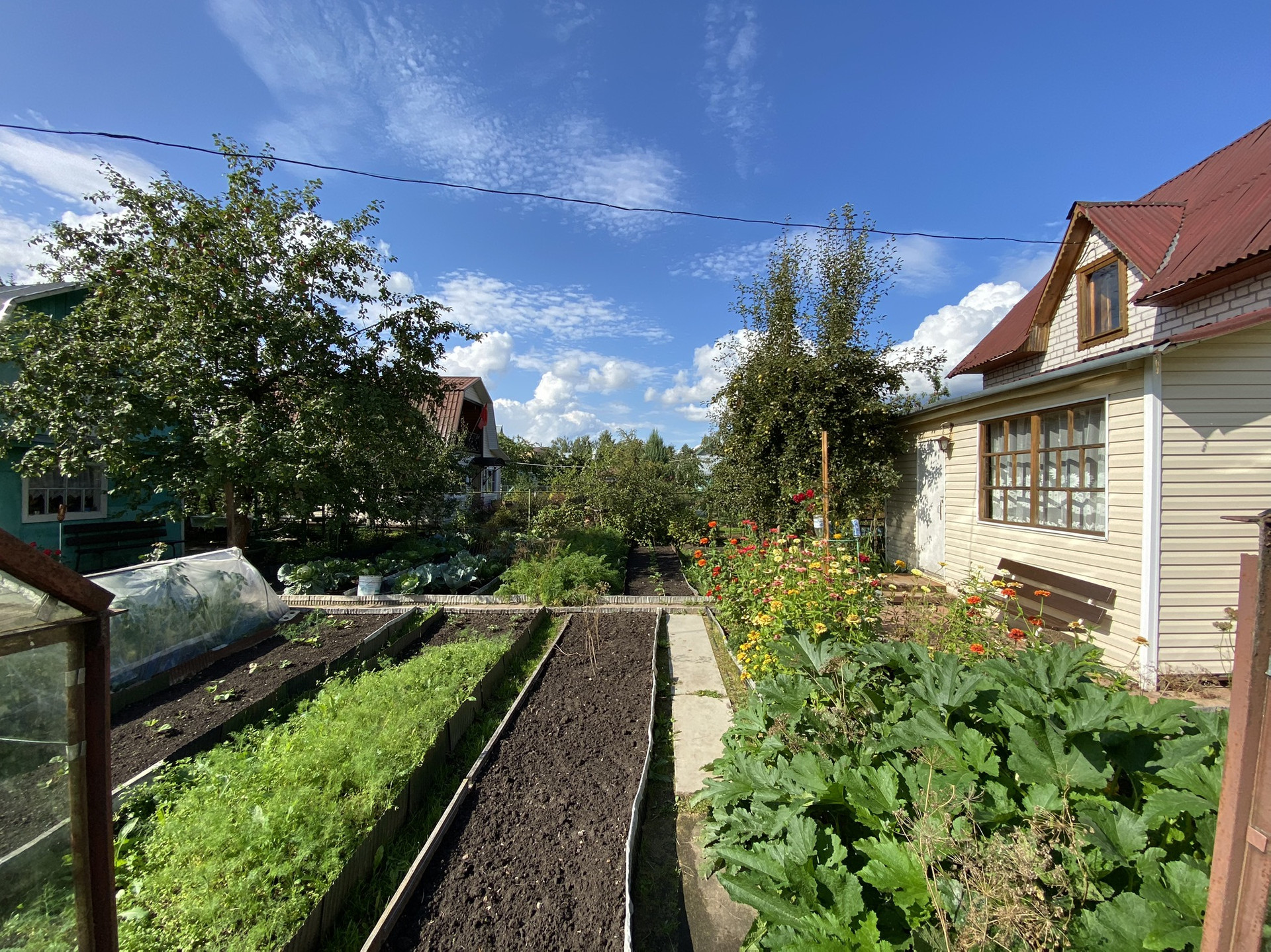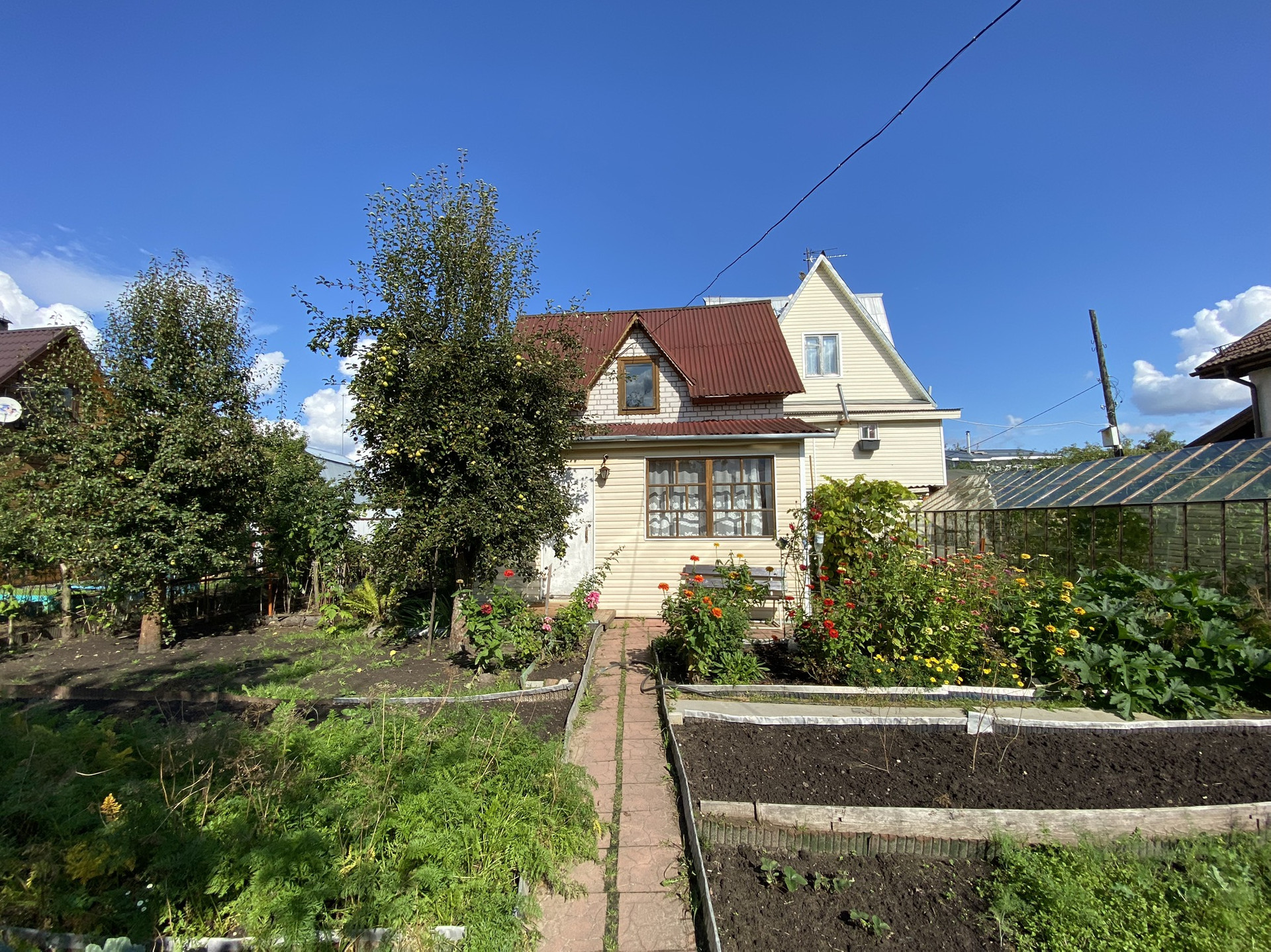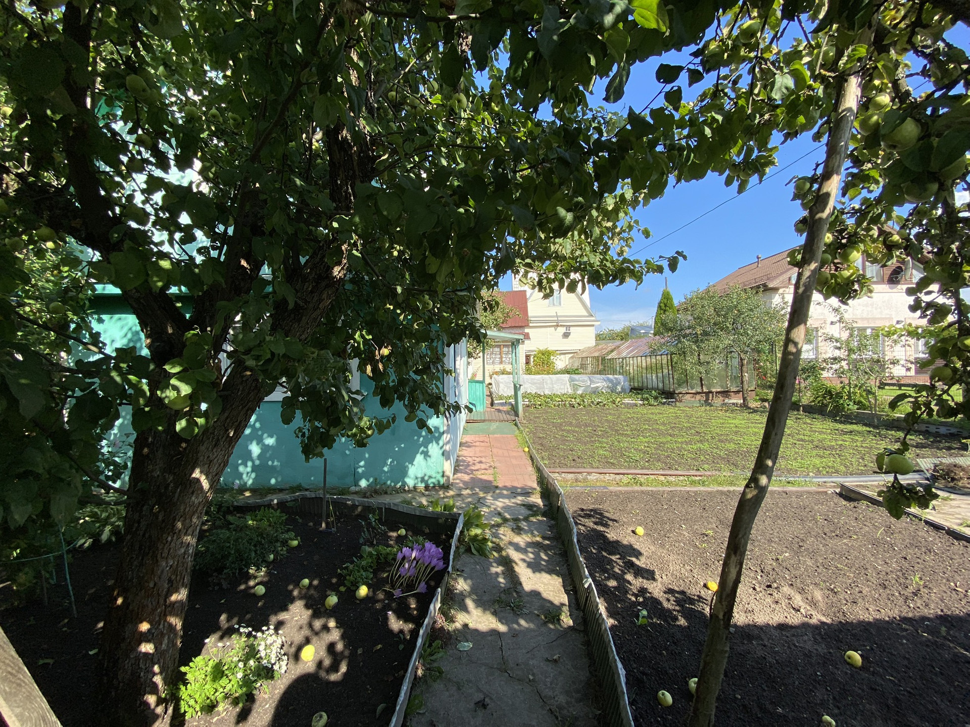 Участок ухожен и разработан ,имеется две теплицы ,растут плодовые деревья ,яблони ,груши .