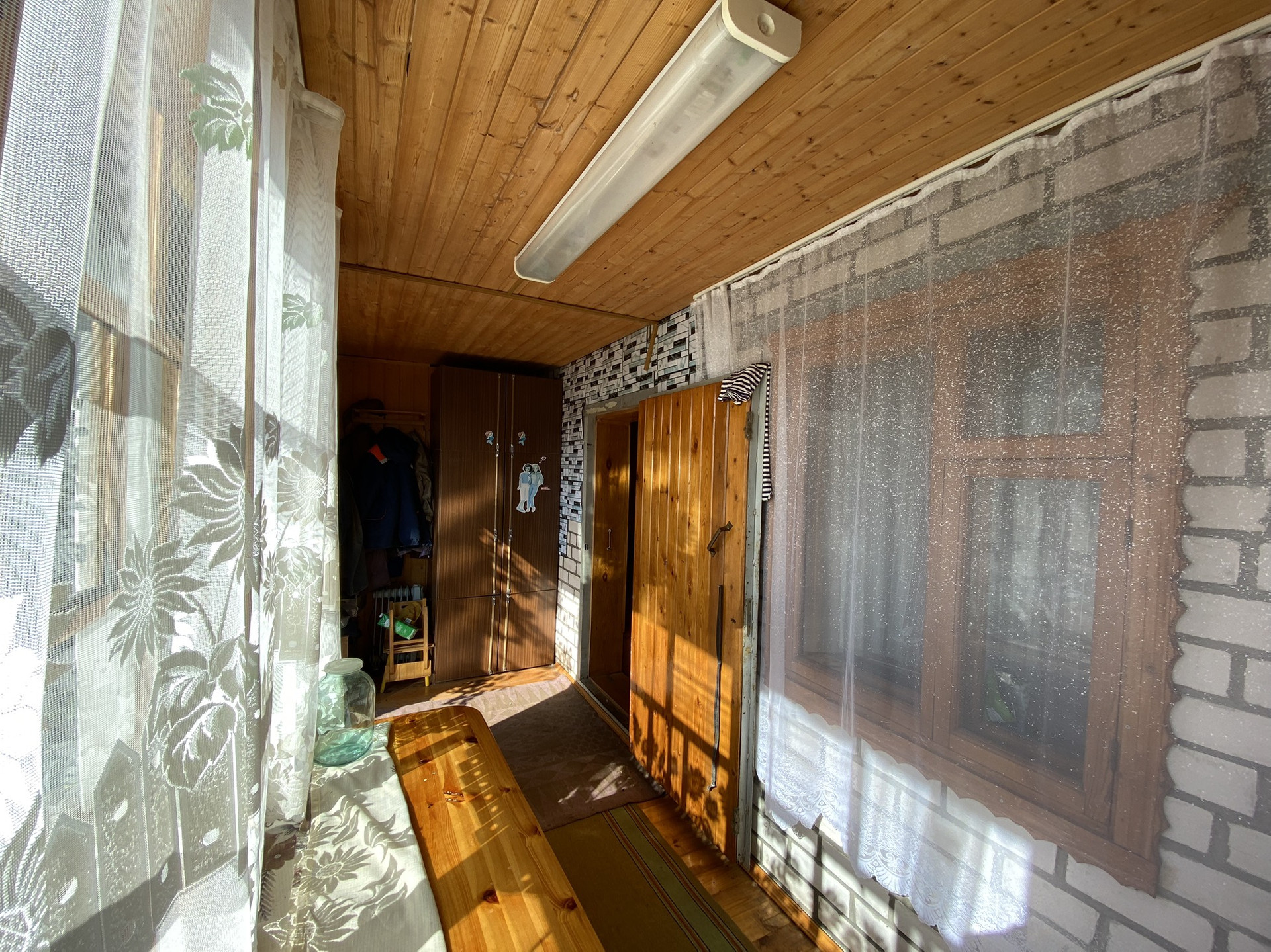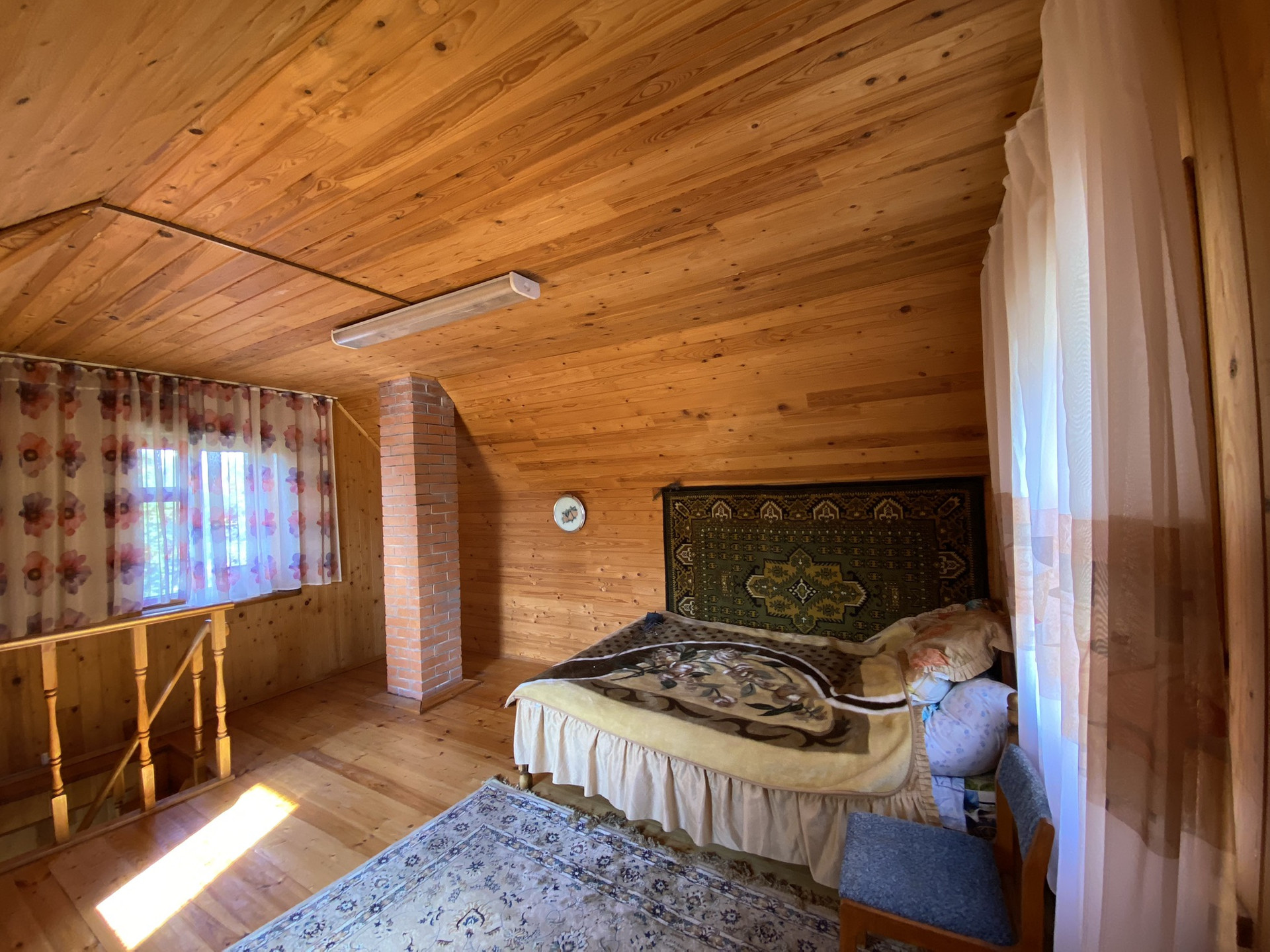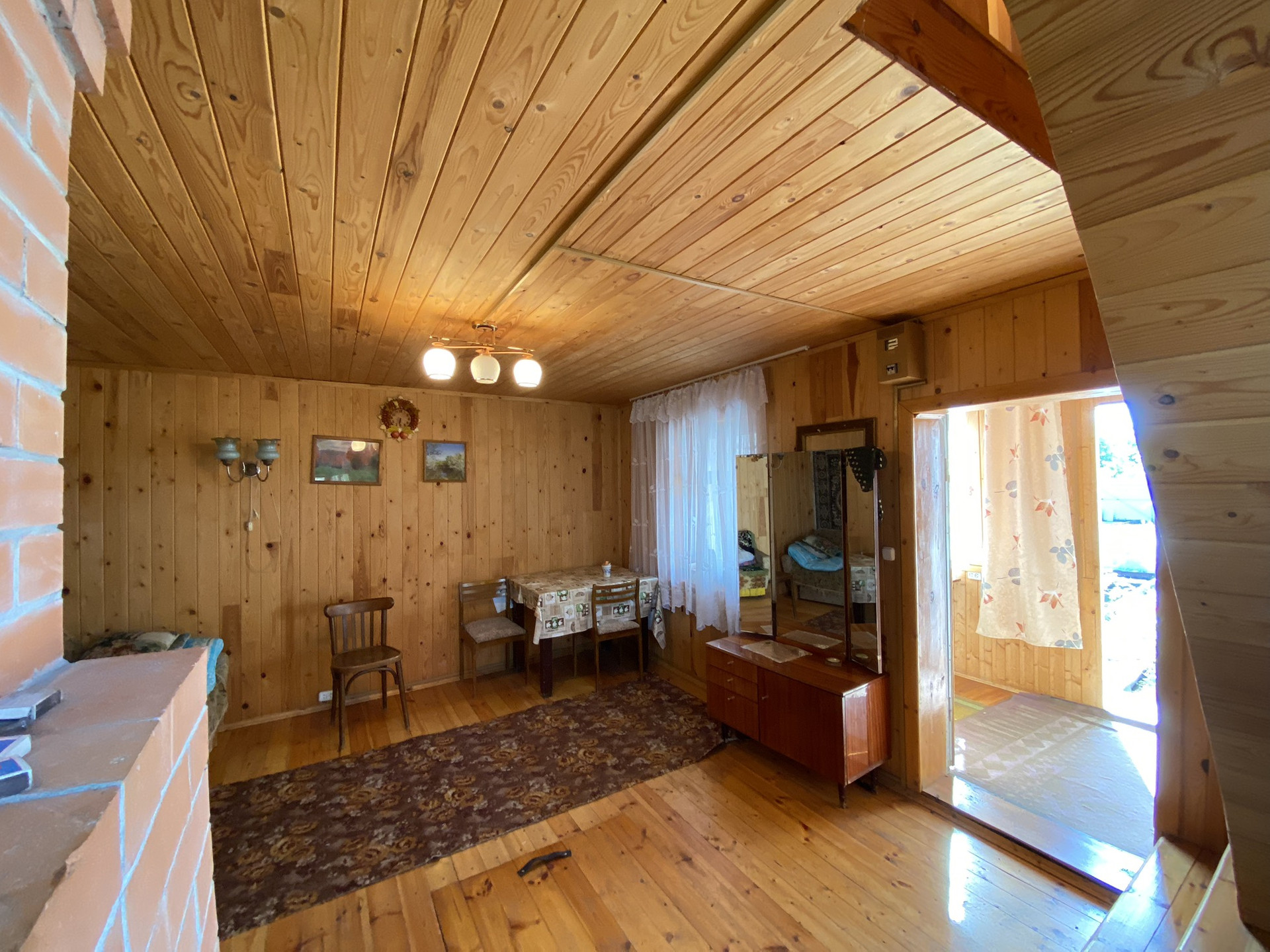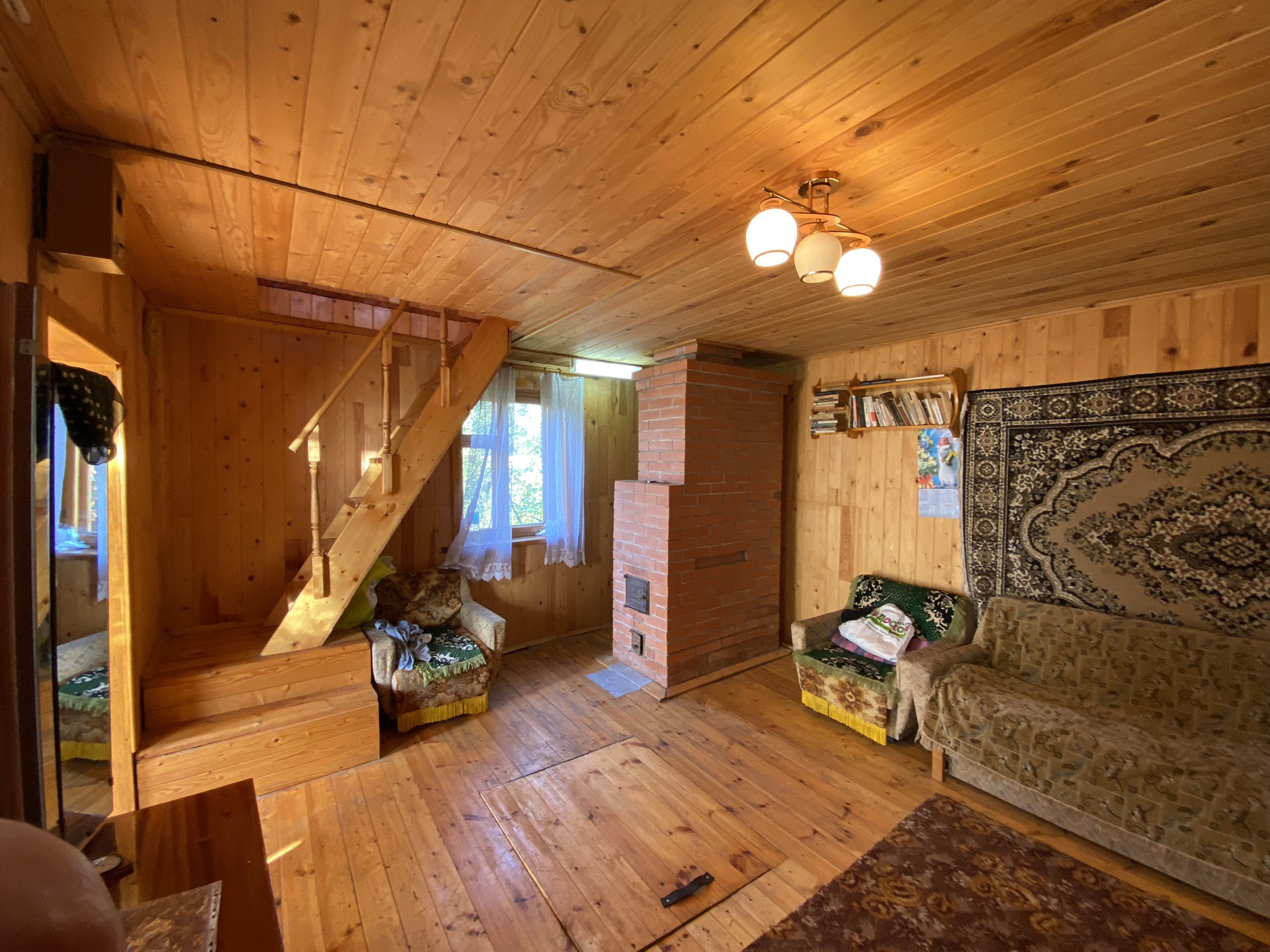 На территории участка два дома ,первый из кирпича 2008 года постройки ,утеплен ,внутри обшит  вагонкой  ,в доме имеется печь обогревает  зимой два этажа