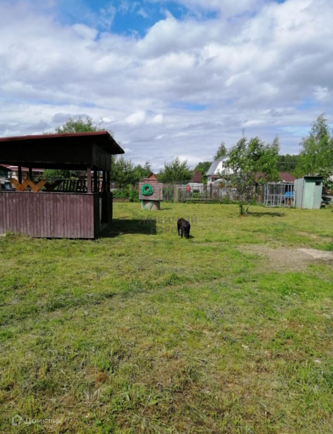 Земельный участок сухой и ровный, огорожен по всему периметру забором из металлопрофиля.