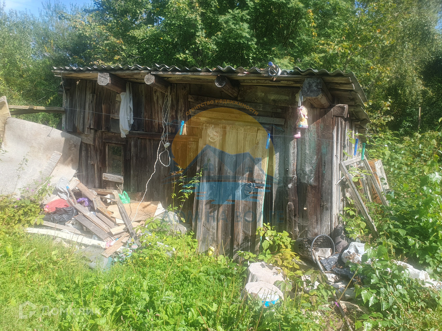 На участке колодец (5 колец), благородные растения, сарай( под снос). Участок огорожен металлическим забором.