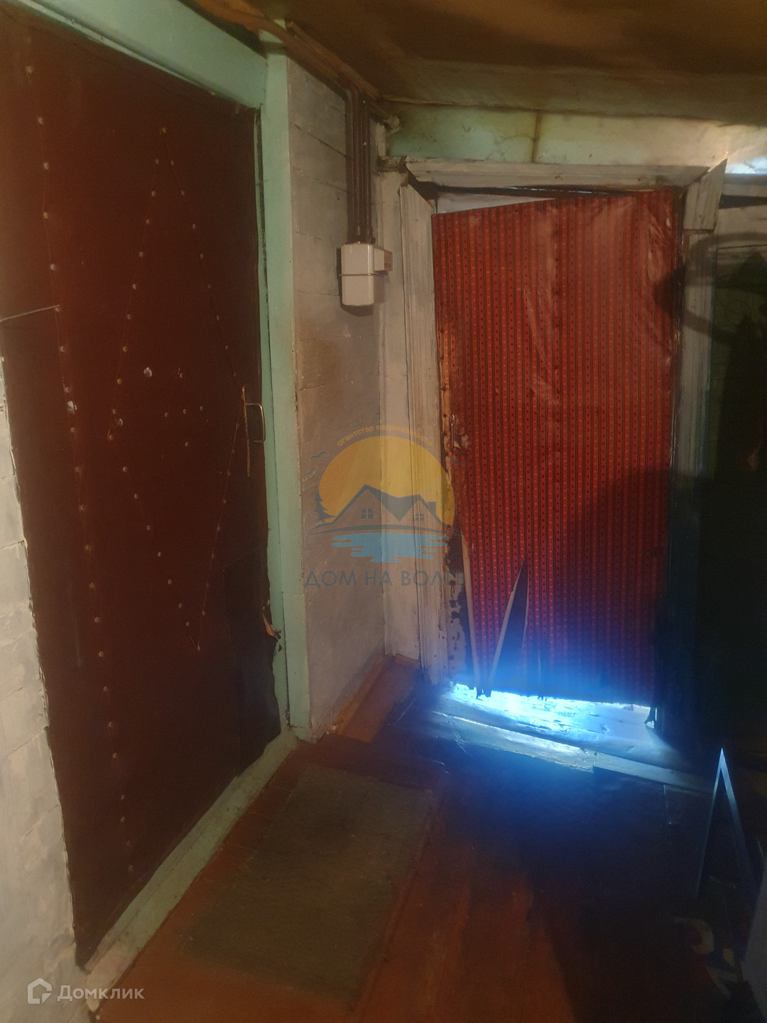 Продается 1/2 дома. Дом построен из бревна. В доме прихожая, 2 комнаты, кухня, терраса и санузел.