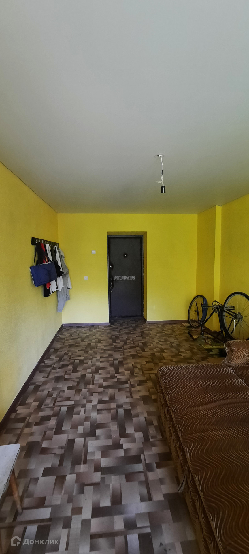 В комнате сделан ремонт (окно пластиковое, натяжной потолок, стены выравнены и покрашены, на полу линолеум, железная дверь). Мебель остается.