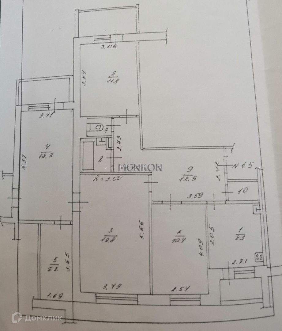Квартира расположена на 8 этаже 9ти-этажного панельного дома. Общая площадь квартиры 92.30 кв.м, площадь комнат 10.4+19.8+18.3+11.8 кв.м.