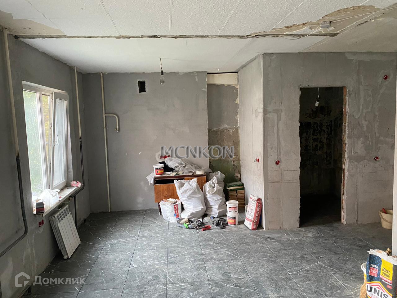 Квартира под отделку, на пол уже положена плитка, окна пластиковые, новая электрика