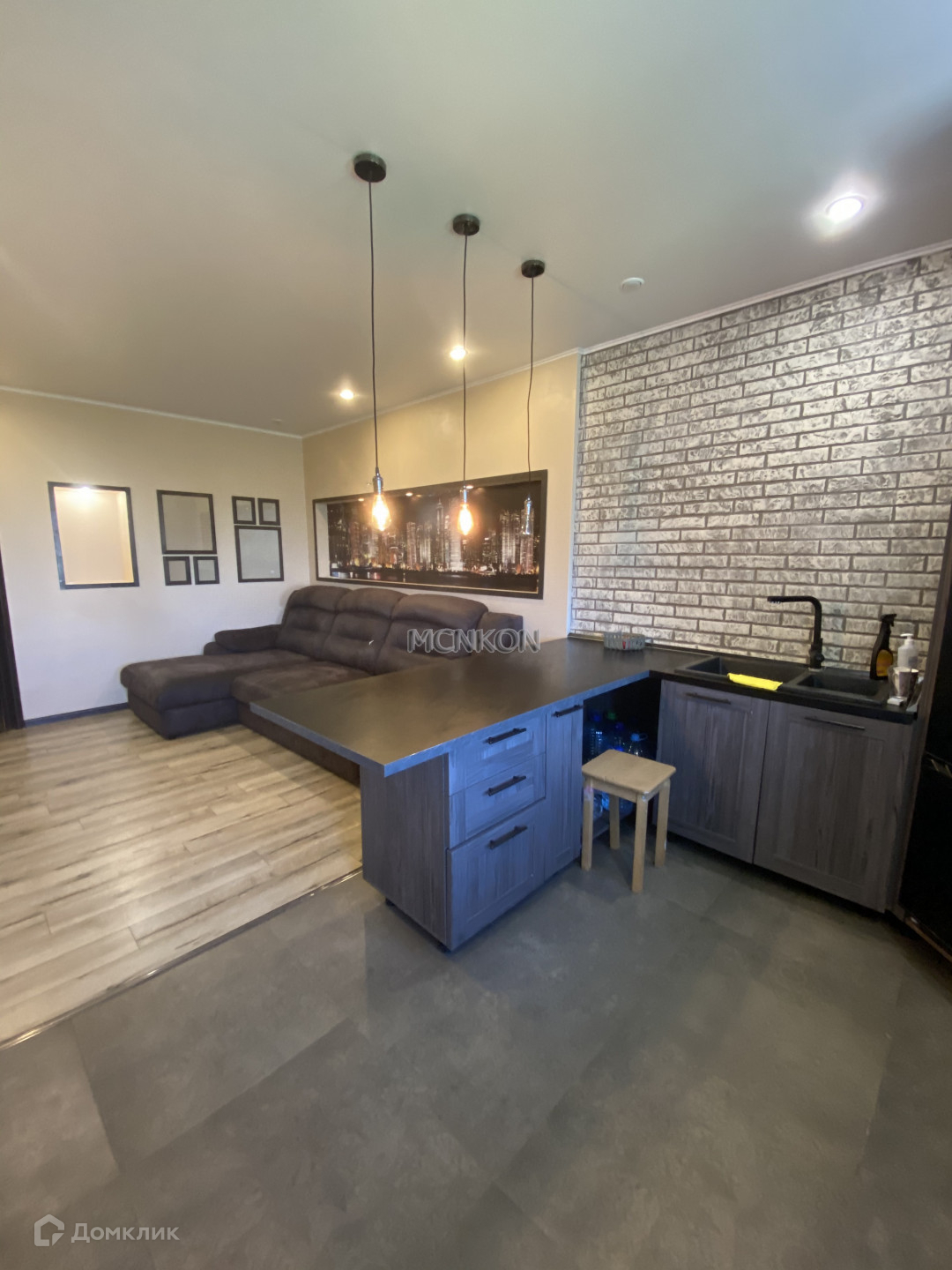 В квартире кухня совмещена с гостиной, так же есть спальня, раздельный санузел, прихожая, кладовка. Счетчики установлены. При продаже остается мебель и техника по договоренности.