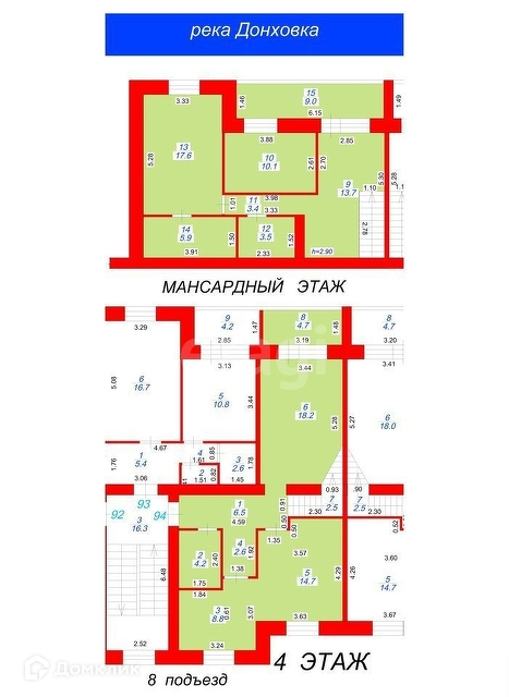 Двухуровневая квартира,две лоджии с прекрасным видом на реку