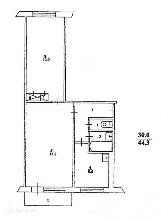 Общая площадь 44 м2