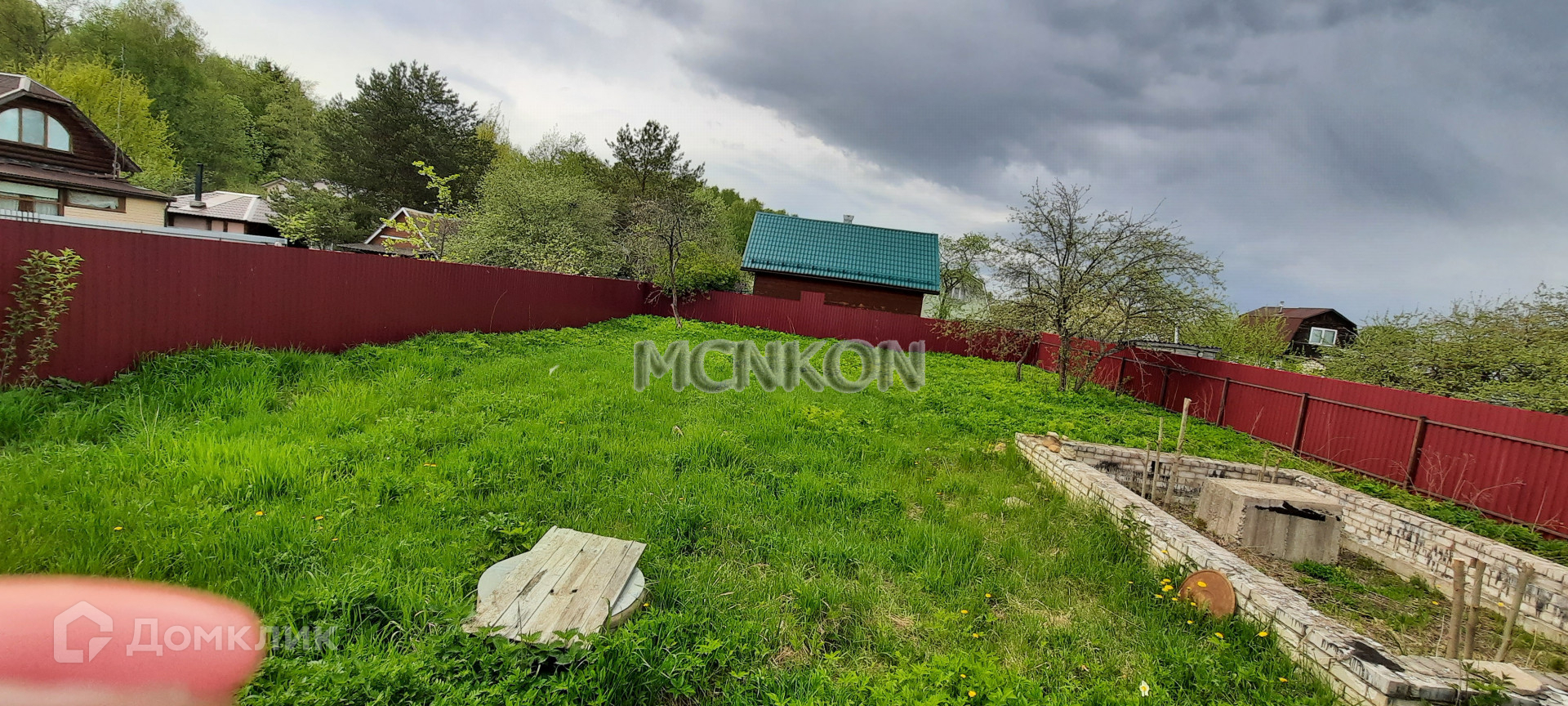 На участке фундамент под дачу (4х6.5м). Колодец (вода техническая).