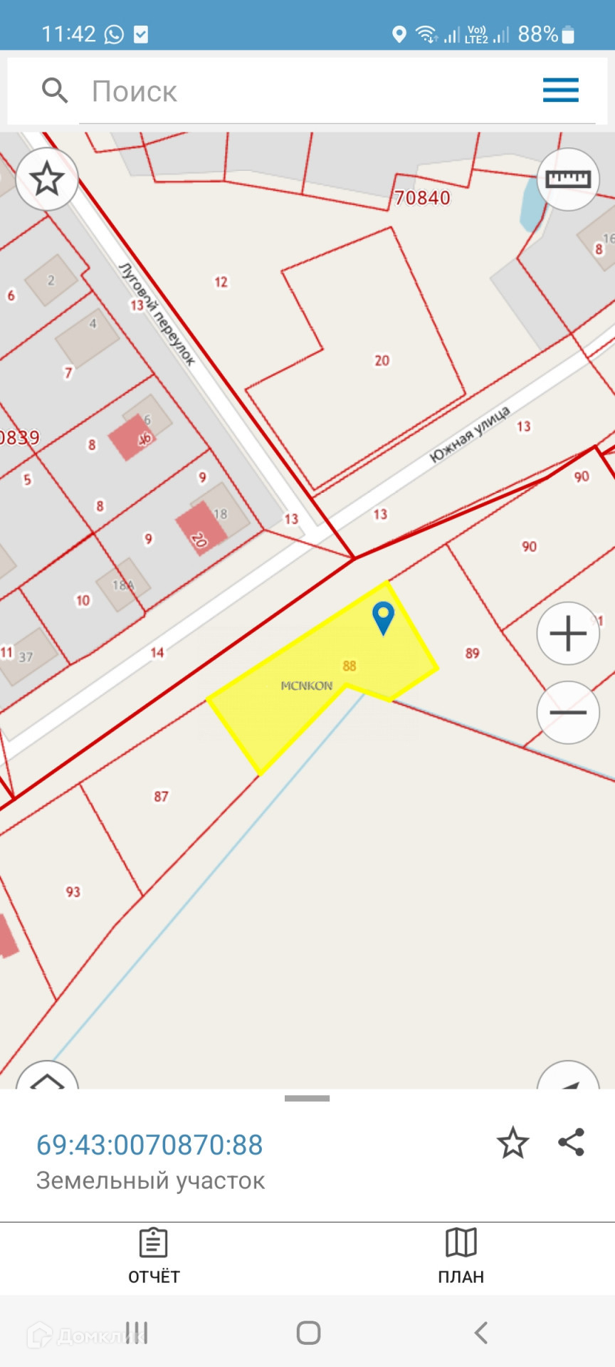 Участок находится на пересечении улиц Южная и Луговой переулок. Есть подъезд к участку.