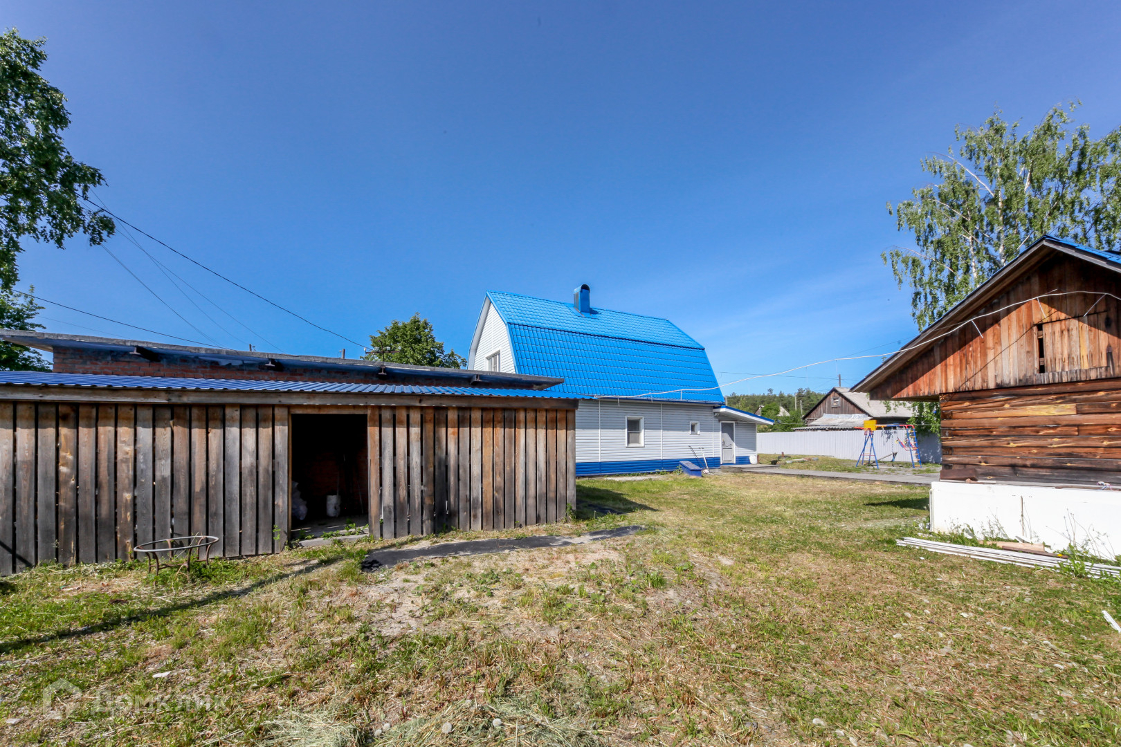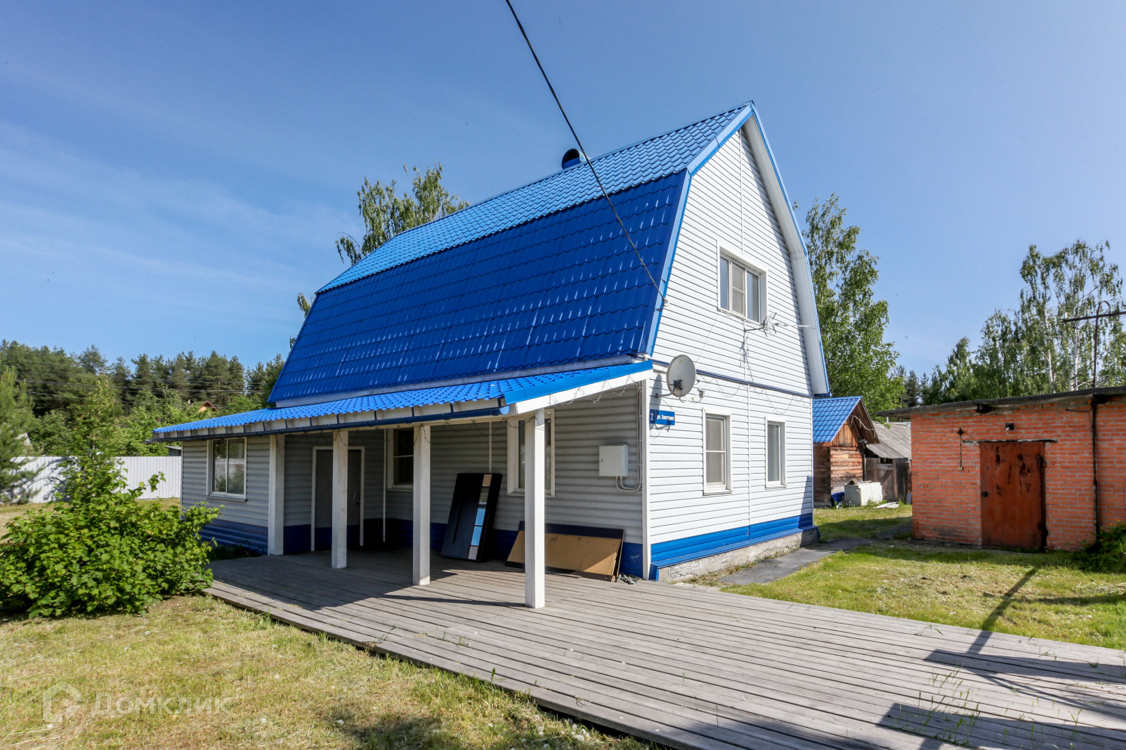 Участок ровный, сухой, сделан качественный дренаж, по всему периметру установлен забор, посажены многолетние деревья, есть теплица из поликарбоната. Детская площадка, большой кирпичный гараж, хозяйственная пристройка для дров.