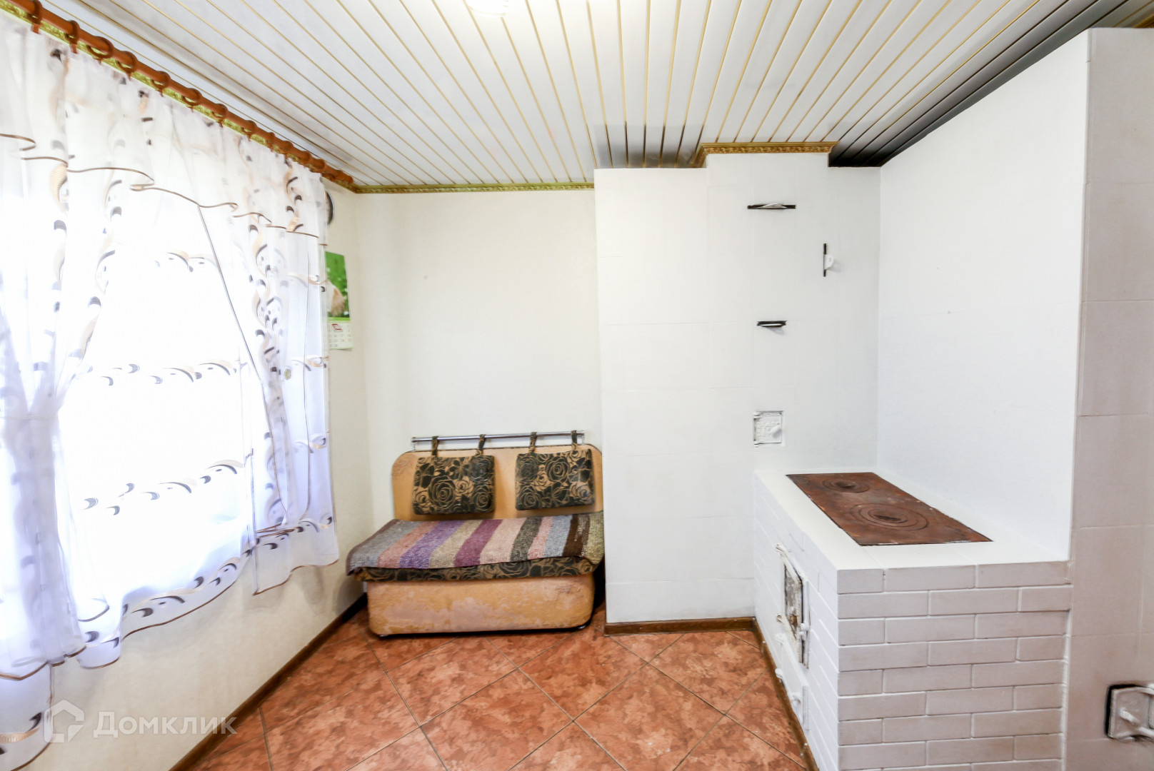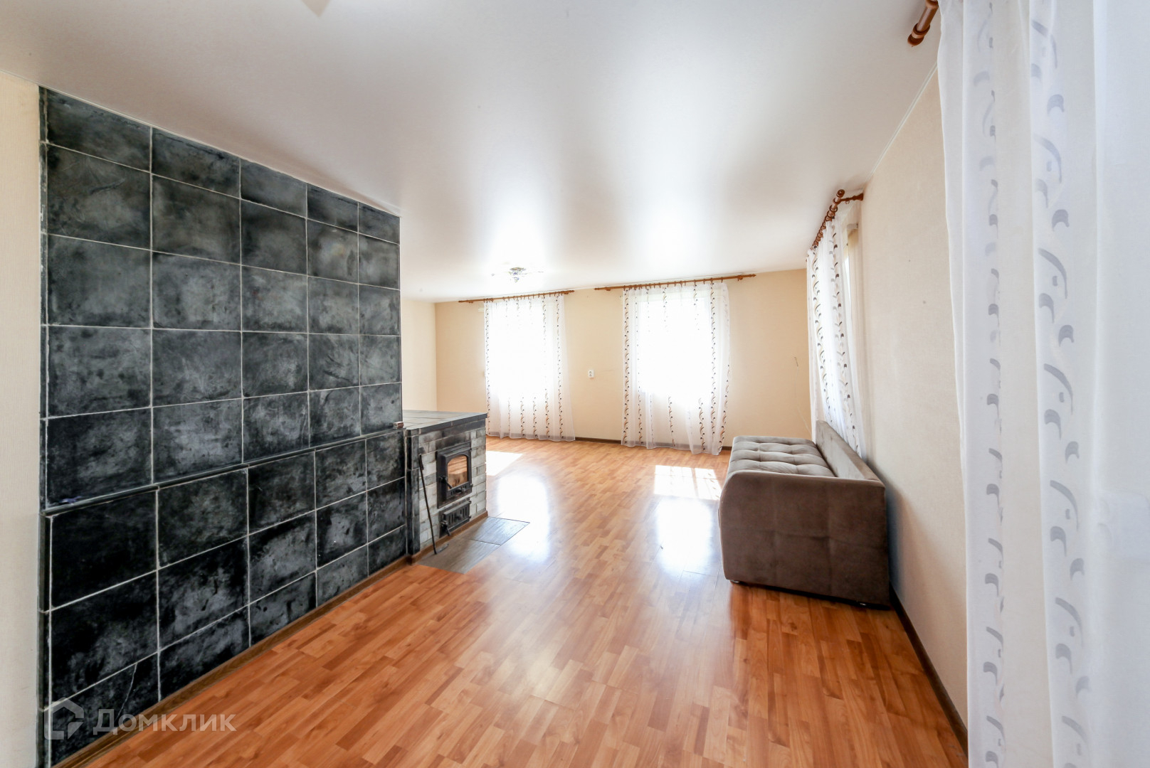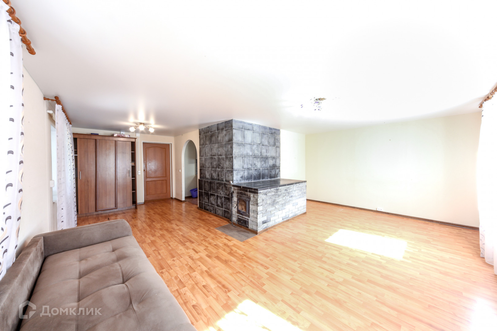 Просторная комната с натяжным потолком, напольное покрытие ламинат, установлены стеклопакеты, сделана шикарная печь с лежанкой по финской технологии из талькохлорида, которая прослужит Вам очень много лет.