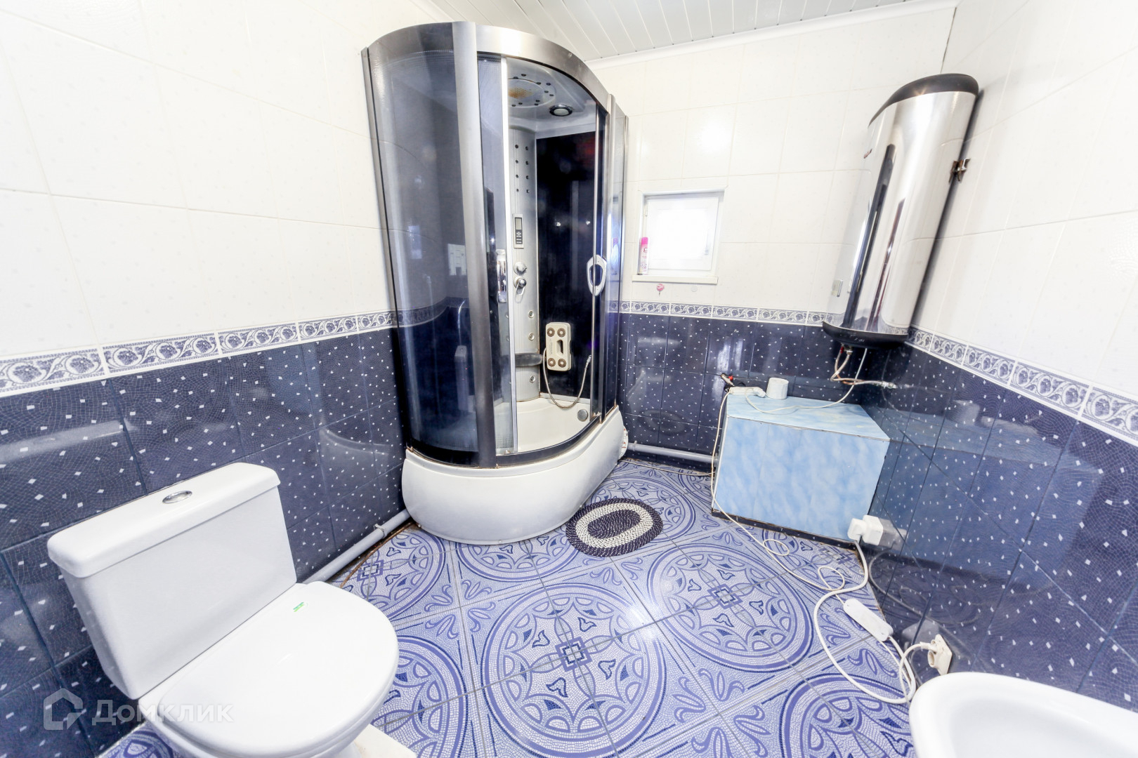 Совмещённый санузел с душевой кабиной, весь облицован плиткой, сделан тёплый пол, установлен бойлер на 80 литров.