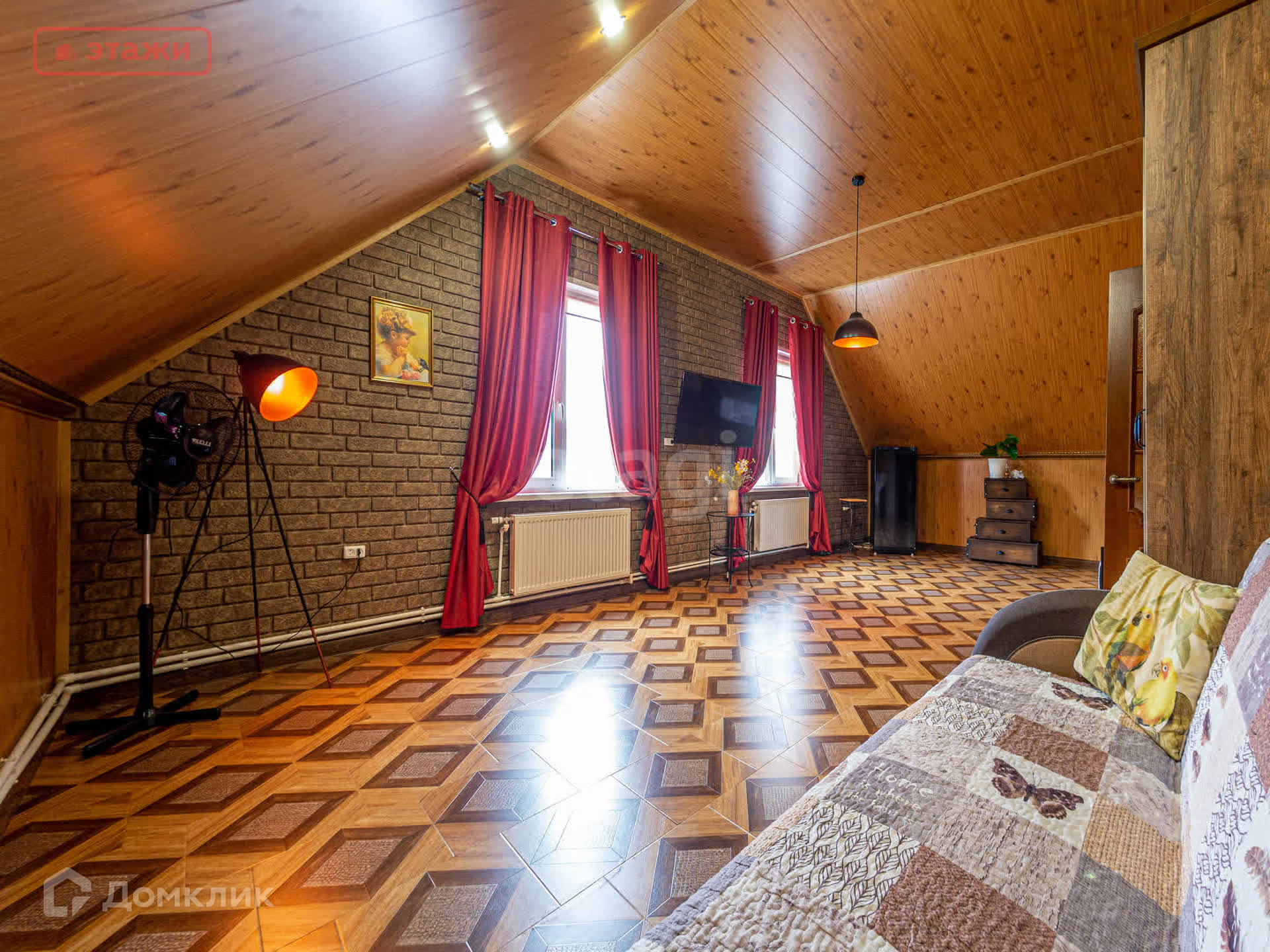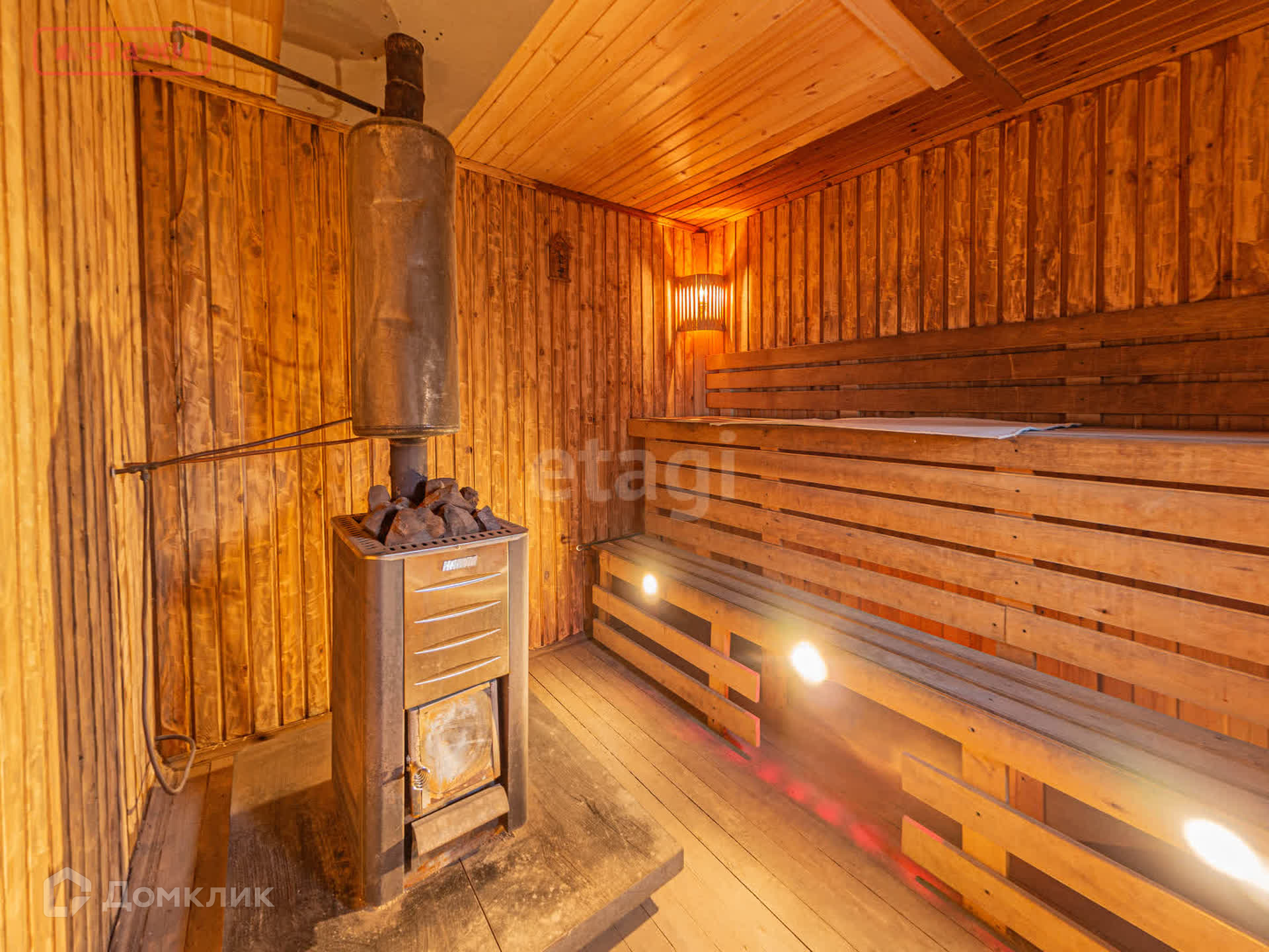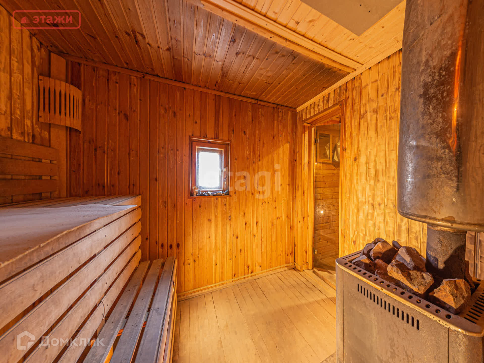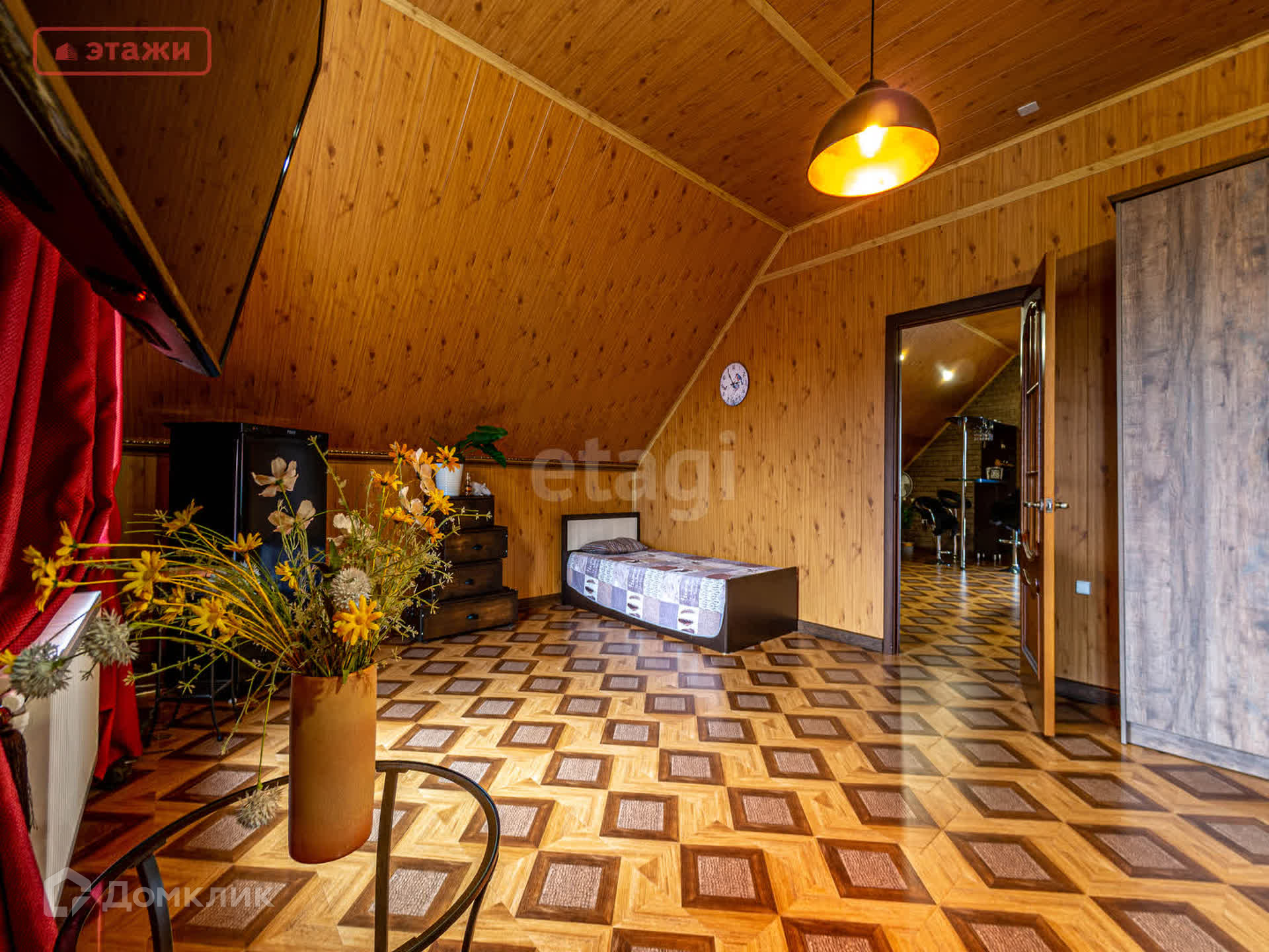 На первом этаже находится просторная гостиная с панорамными окнами и камином, уютная спальня, вместительная гардеробная, раздельный сан.узел. Лестница из массива ведет на второй этаж в стильную бильярдную и гостевую комнату. Имеется вся необходимая бытовая техника и мебель, которая остается новым владельцам.