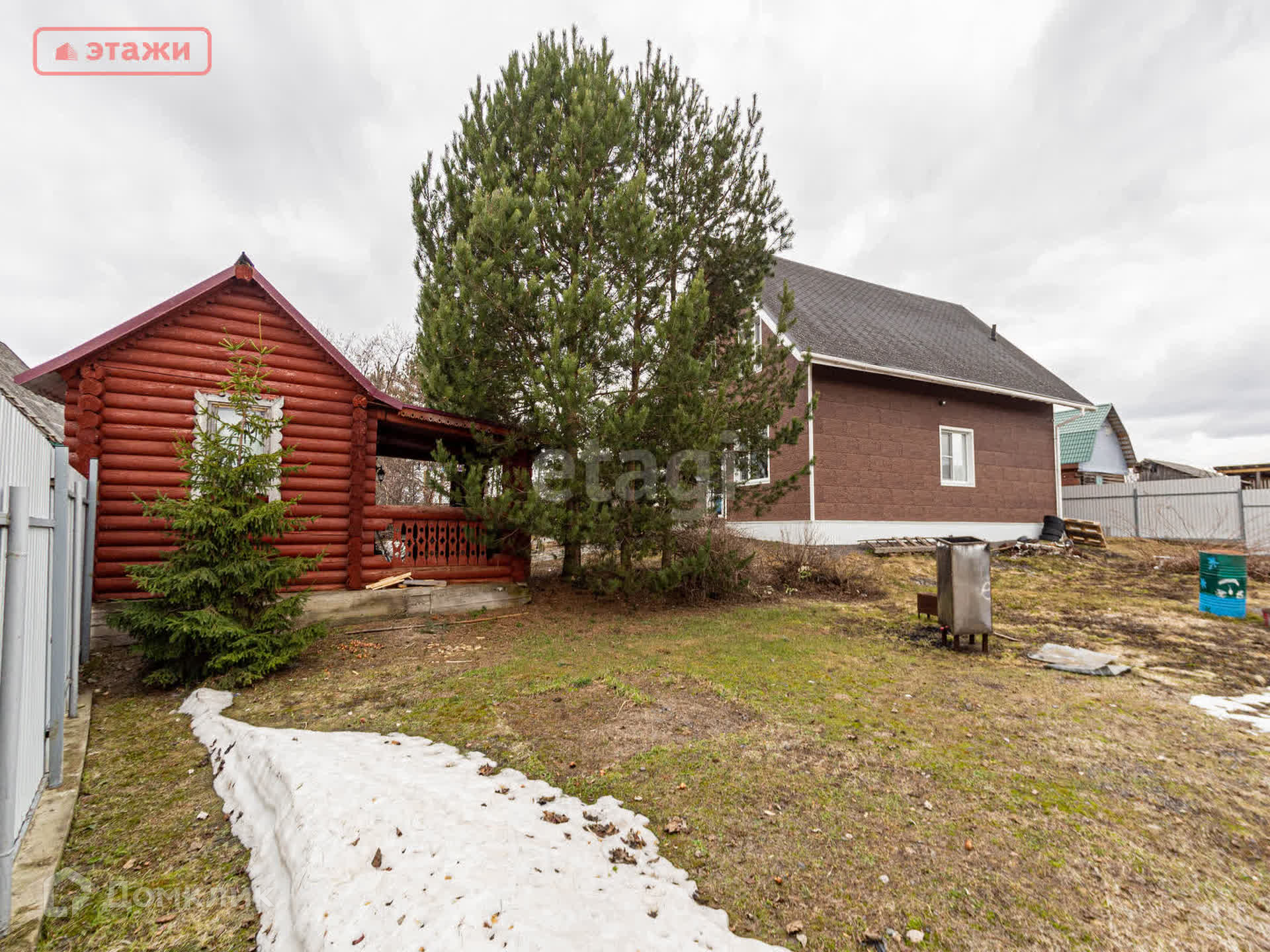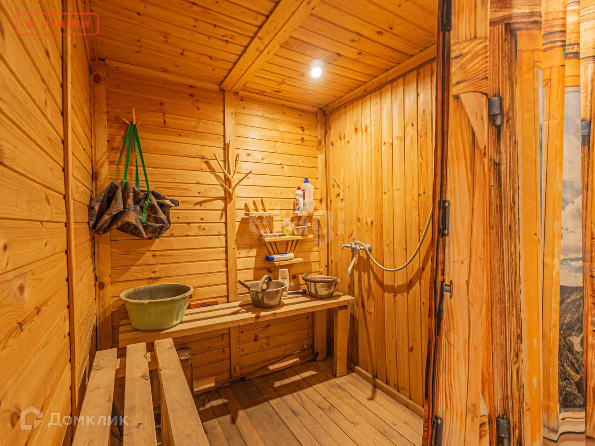 На участке 13,5 соток расположена баня из калиброванного бруса площадью 27 м², вода проведена. Построен большой сарай. Сделана площадка под каркасный бассейн.