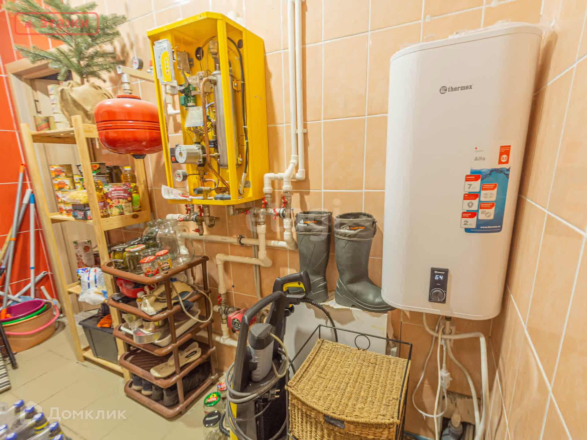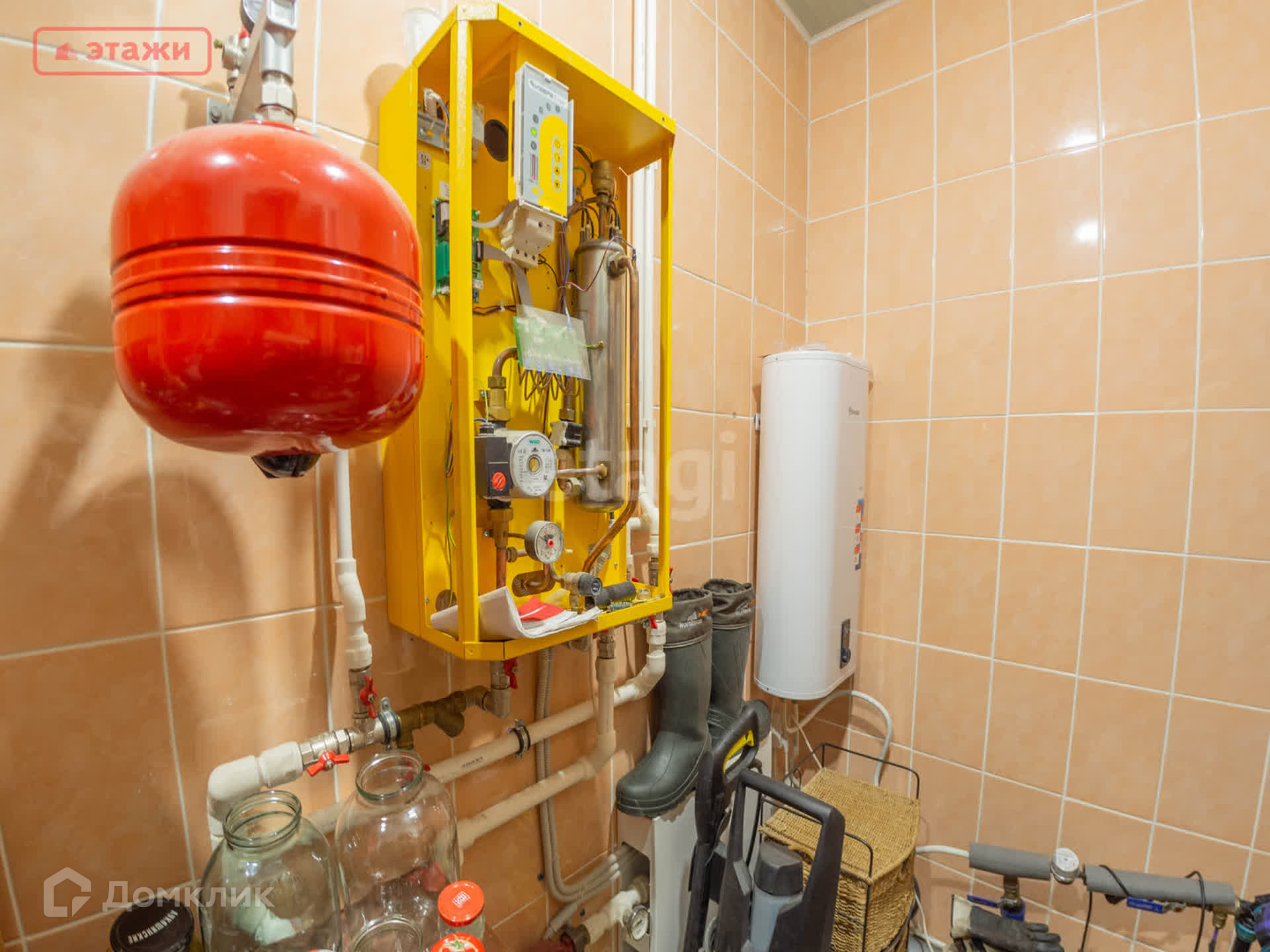 Отопление осуществляется с помощью электрического котла мощностью 12 кВт. на первом этаже — тёплый пол на втором батареи. Установлен бойлер. Канализация- септик.