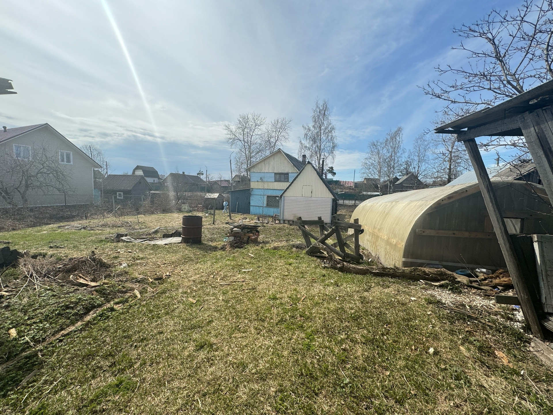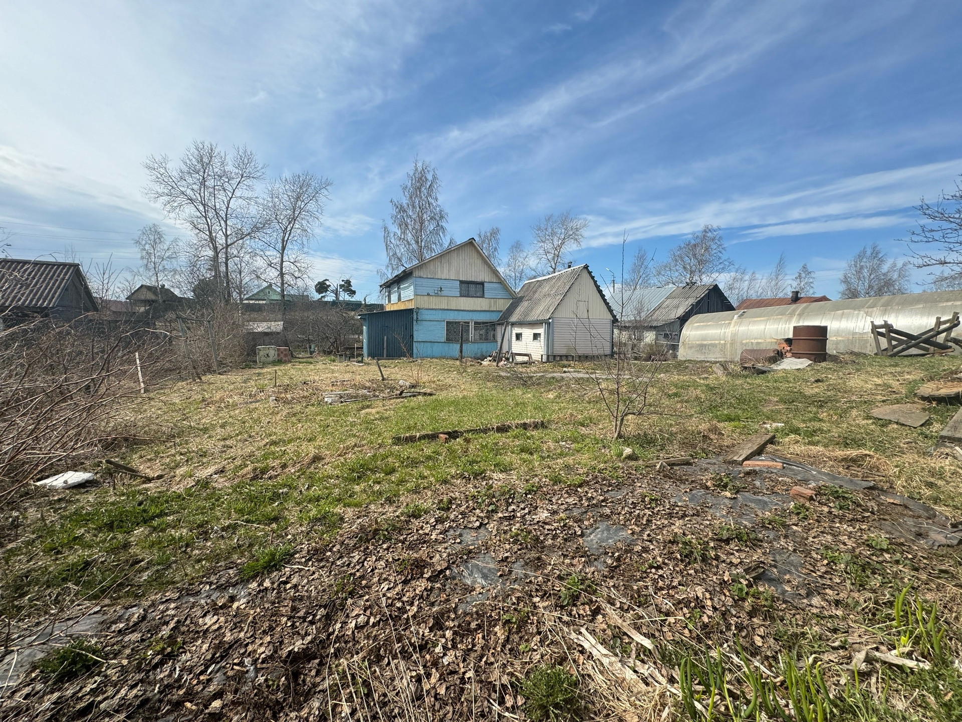 На участке расположен дом, баня, сарай, теплица, установлен забор.