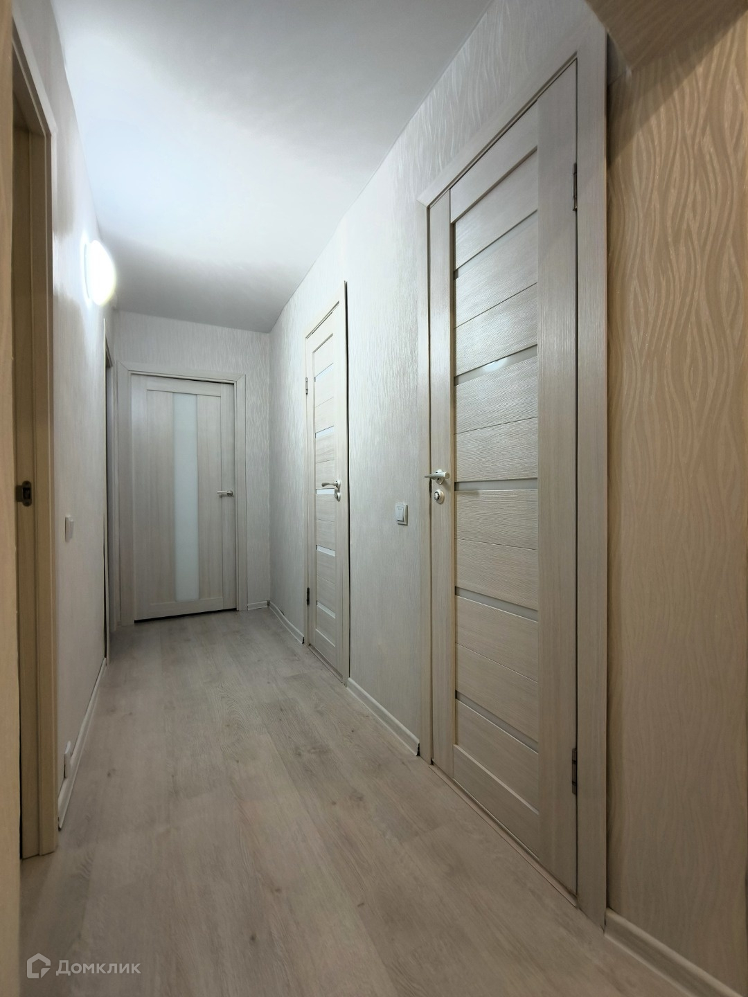 - установлены одинаковые межкомнатные двери, ламинат, на всех окнах установлены стеклопакеты, натяжные потолки