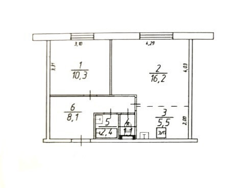 Общая площадь 43.6 м2