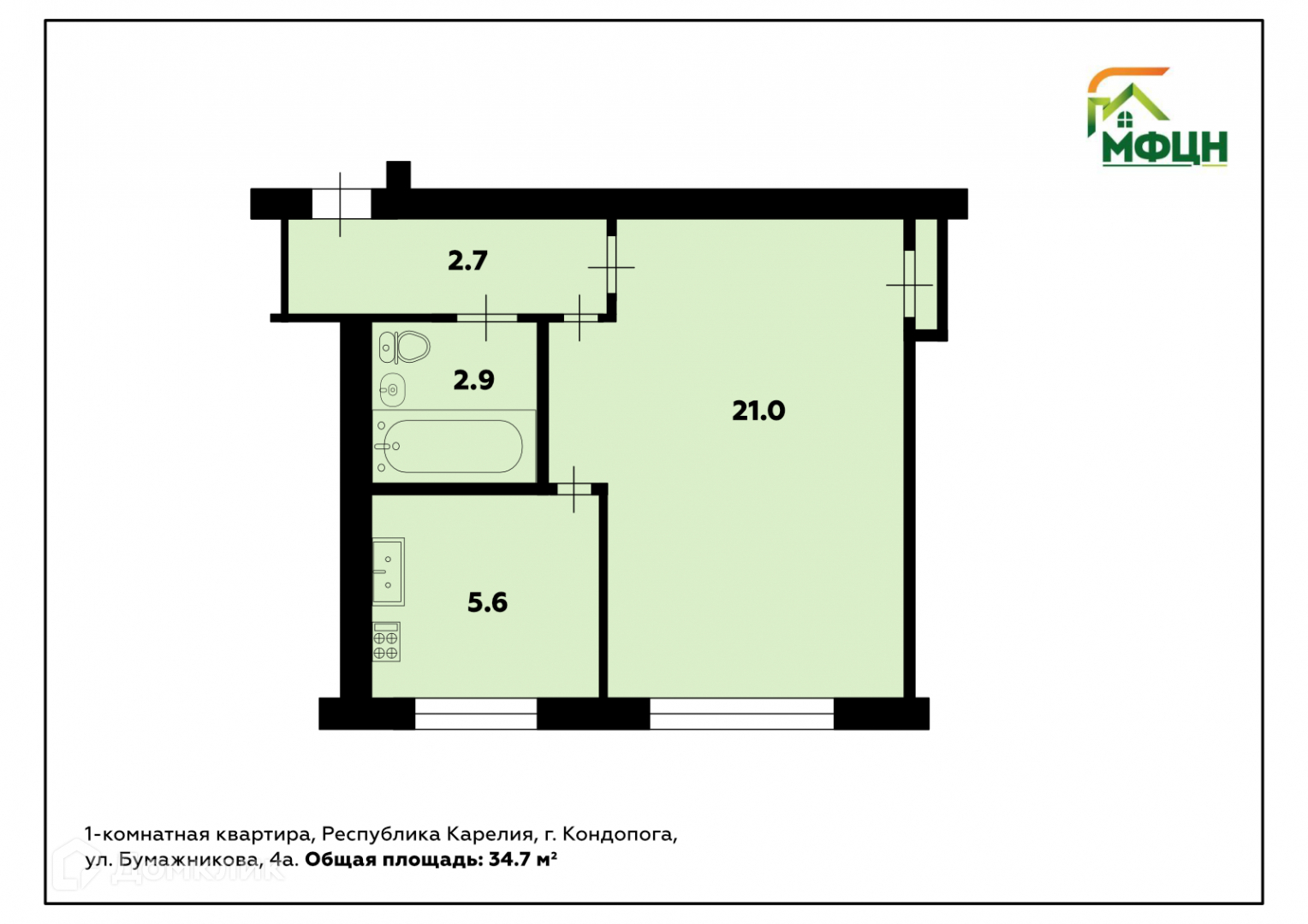 Общая площадь 34.7 м2